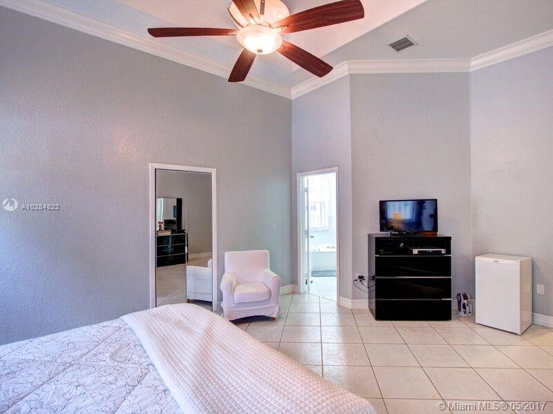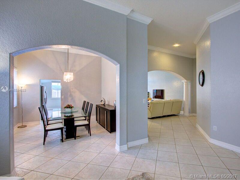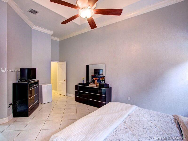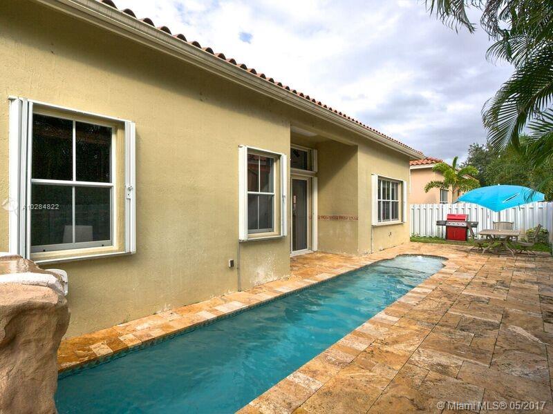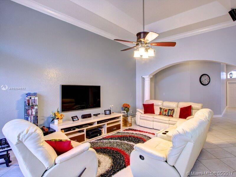 Beautiful cozy 1 story home. This home offers a great open floor plan with high ceilings. 5 bedrooms, 3 full bathrooms, 3 car garage. Lap pool with water cascade. Renovated kitchen with newer appliances. Master bedroom with custom built walk-in closets, new High Efficency A/C. All walls have mid outlets for flat screen TVs. Hurricane shutters. Home is located one light away from the highway. Walking distance from schools...