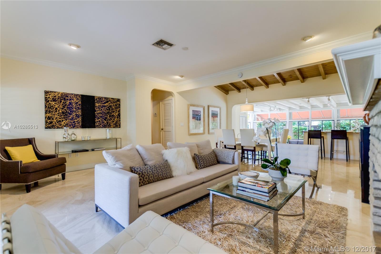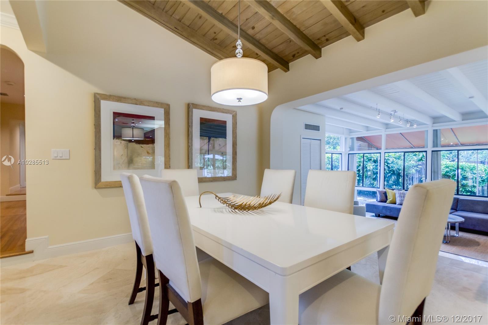 Best Value & Location in Coral Gables!!!Charming S.Gables 5 bedroom/3 baths home on beautiful oak tree lined street w/well maintained sidewalks. Walking distance to Sunset Place, U of M, and Sunset Elementary. Natural light flows through all rooms w/views of lush landscaping on this wide lot. Chicago brick back patio off family room & wraparound backyard.Granite wet Bar entertaining area in large family room. Updated kitchen with Granite countertops Gas Range, Sub-Zero refrig.,SS appliances. Luxurious master bedroom and updated bath with his and her sinks. Fabulous Natural oak wood flooring in bedrooms & beautifully polished Marble flooring in living,dining,and kitchen. 5th bedroom has optional 2nd entry. Fully fenced yard, Room for large Pool and Accordion storm shutters. Move in ready.