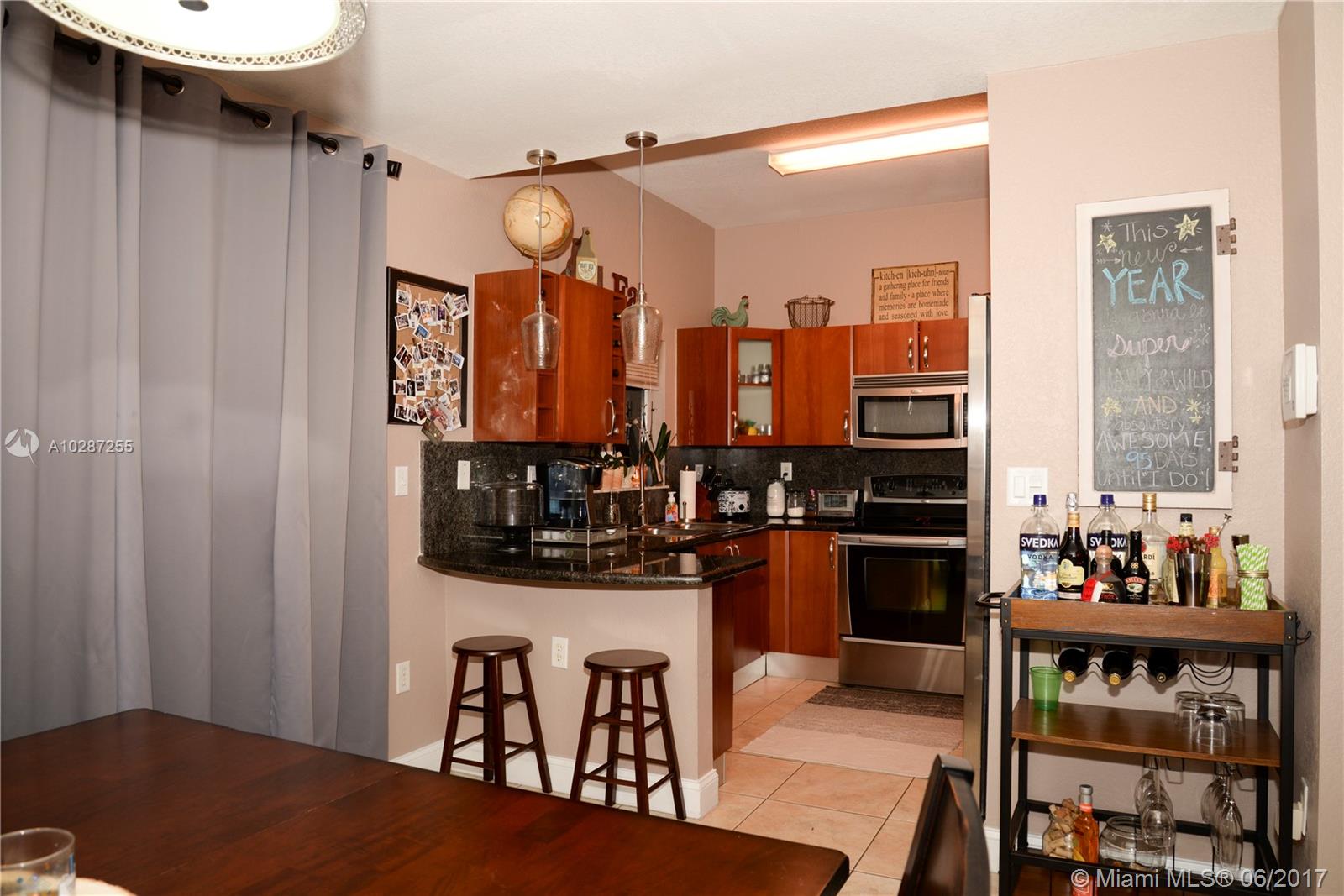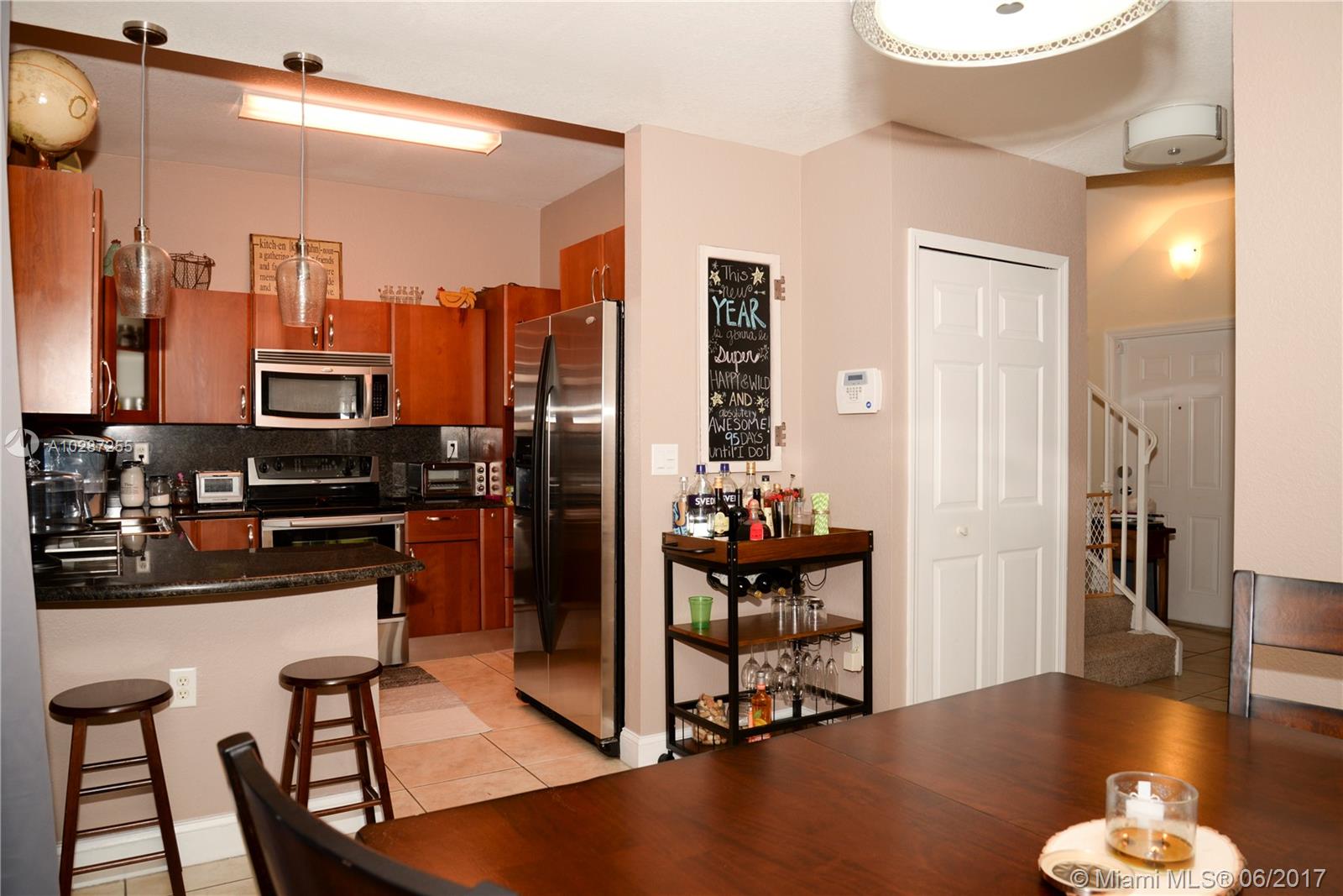 Townhouse in desirable community! Spacious 2/2.5 in Tuscan Lake Villas. Close to main highways, shops & good schools. Remodeled with granite counter tops, wood kitchen cabinets, stainless steel appliances, tile floors downstairs, carpet upstairs, upgraded bathrooms, fenced patio. Upgraded all lighting fixtures, faucets, closets, and pavers in terrace. 2 parking spaces in front of property & guest parking available.