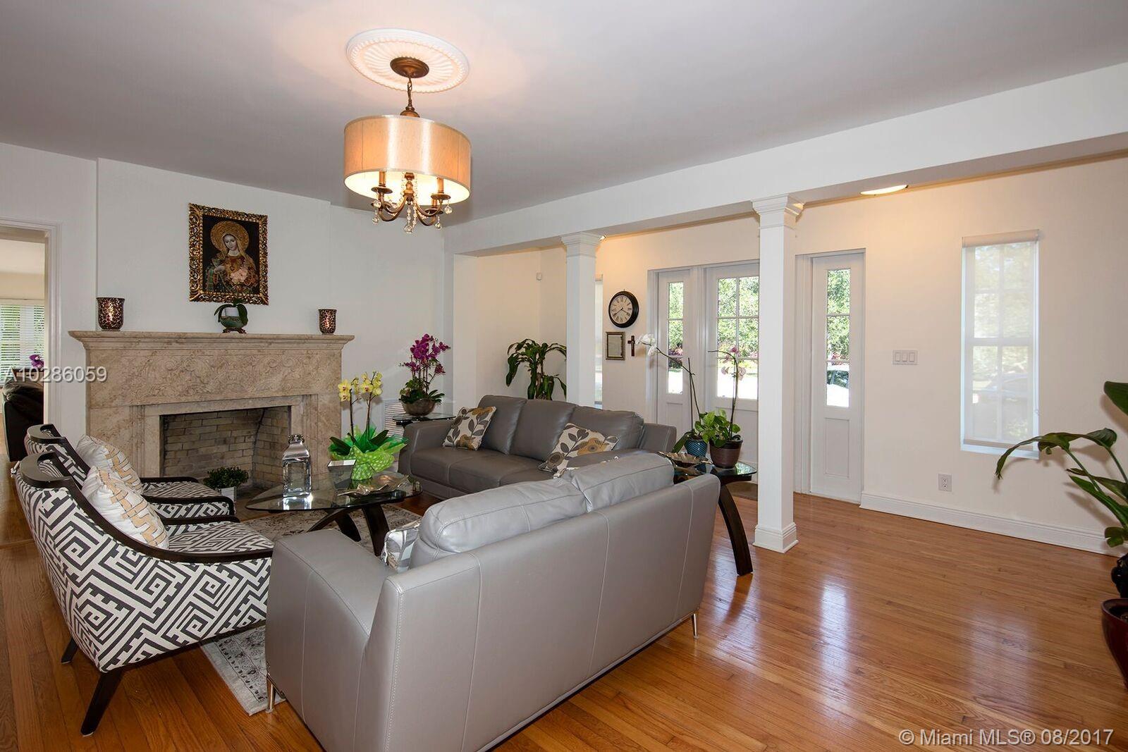 Art Deco 6 Bdrms/5 Baths, Single Family Home, on Oak-Lined Segovia. Renovated to perfection & saving the Distinct Deco Details. 1st Flr: Formal LR w/Deco Frplc, stunning huge Chef’s Kit, formal DR, huge Fam Rm, Office/Bdrm, 2 baths, 2 Car Garage. 2nd Flr: Huge Master Suite w/gorgeous Bathroom & Walk-In Closet, 4 additional Bedrms + 2 Baths, Laundry Rm, & additional Fam Rm w/Deco Frplc.& balcony. Lg Garden w/coral rock patio, room for pool. All Impact glass, all Oak Flrs, all Brand New!