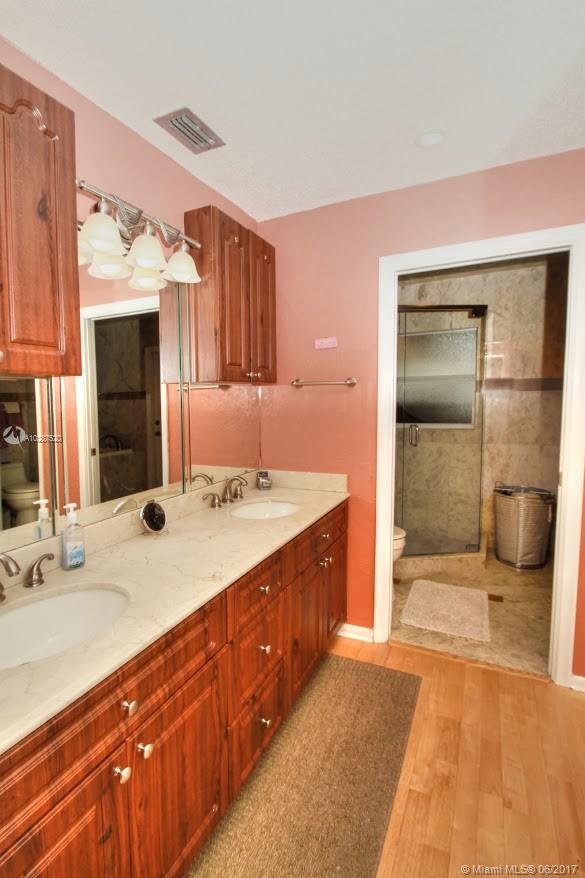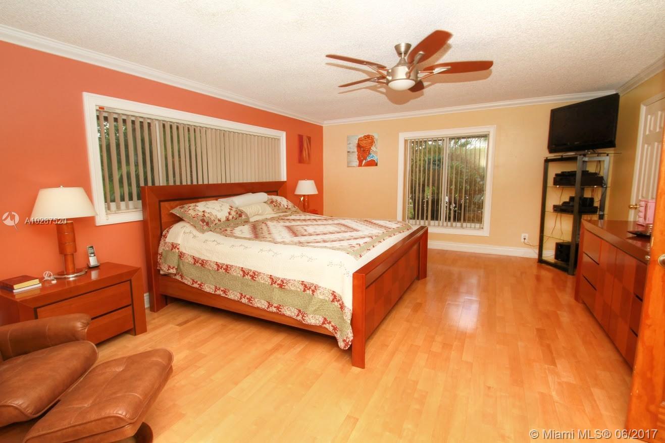 Totally remodeled 4/3 plus office. Spacious corner lot professionally landscaped with circular pavered driveway. Accordian storm shutters. Double door entry with inviting foyer. Remodeled kitchen with granite and wood cabinetry. Very spacious master suite with double vanity and Jacuzzi tub. Additional features include crown molding, solid wood floors throughout main living areas and custom wet bar with wood and granite. Expansive sliders overlook large and private covered patio. Central a/c 2014. New Barrell Tiled Roof mid 2001. Newer refrigerator, microwave. Solar water heater. Shed. Fabulous fruit trees: mango, sapadillo, guinep and papaya. Sold as-is.