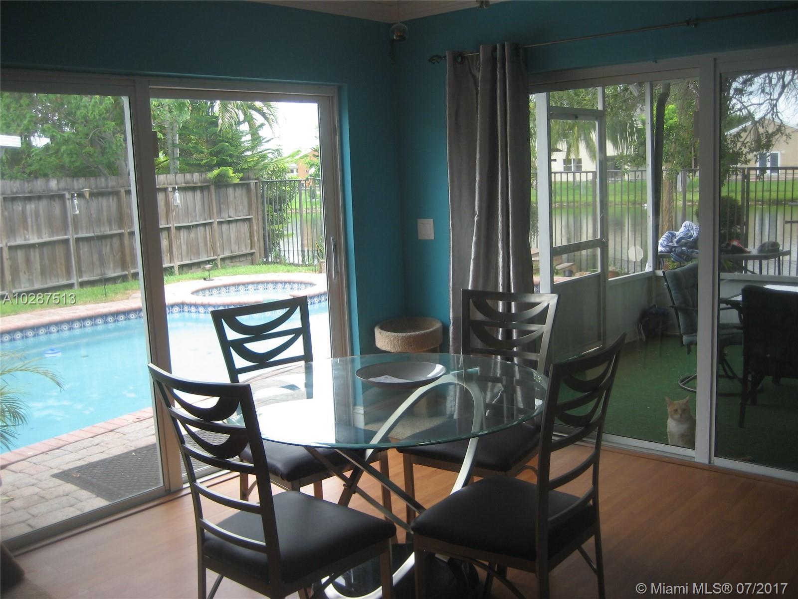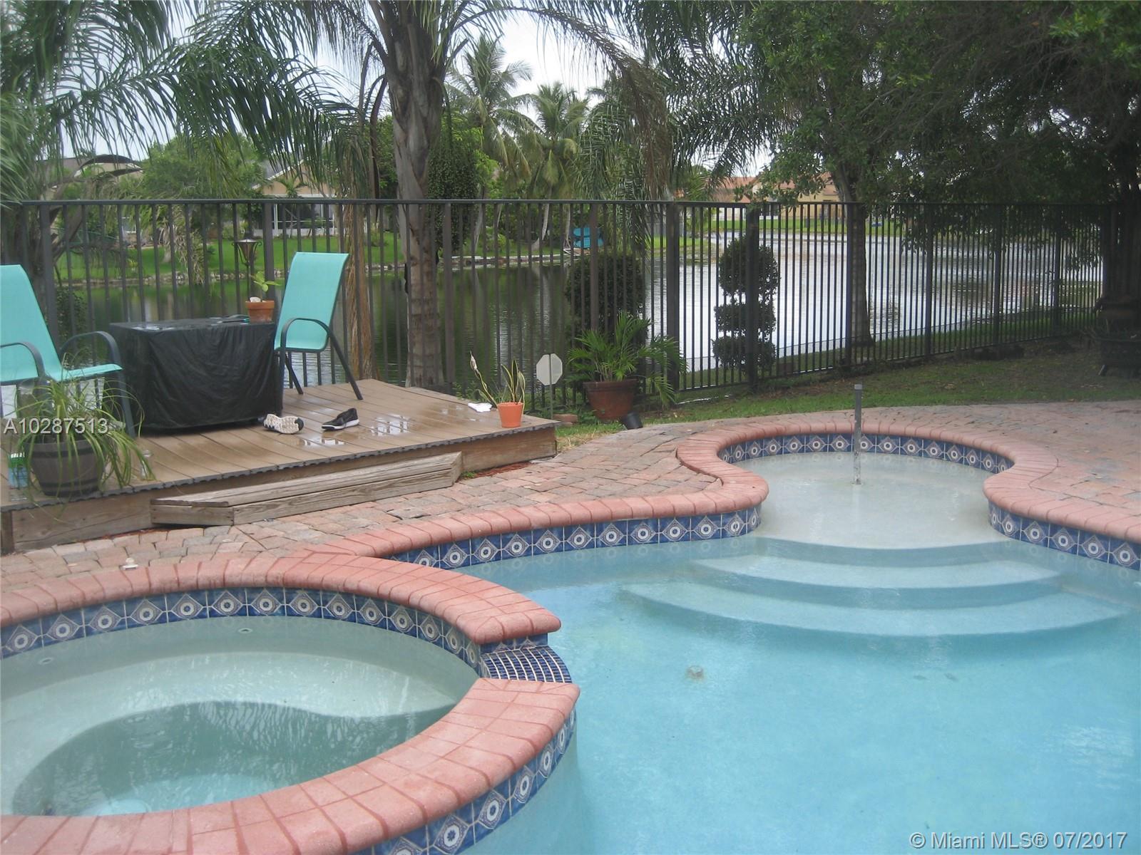 BACK ON THE MAKET! Pretty 2 story lakefront pool home! Spacious 3 bedroom + den, 2.5 baths has a covered screened patio, pool over looking lake . Has a large kitchen with granite counters, lots of cabinets, ss appliances. Hurricane impact windows, garage was converted into a play area/den or office. Near schools, shopping major highways. Roof is 2007, A/C is 3 years old. Situated in Hampton Lakes, a very nice and small community Key West style homes, low maintenance fees.