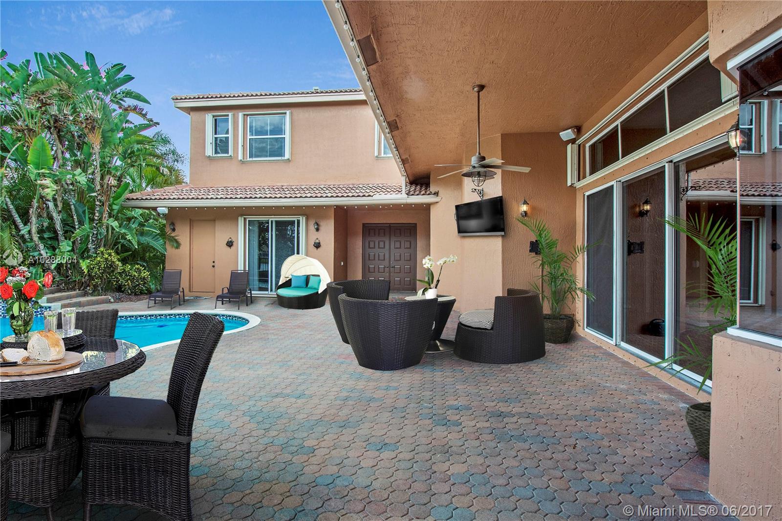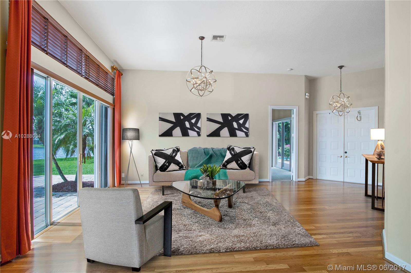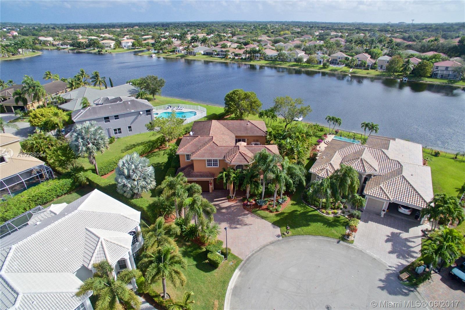STUNNING TROPICAL POOL HOME ON HUGE DEEP WIDE WATER FISHING LAKE! This Rare Waterfront Courtyard Style Home Has a Separate In-law Suite. Master on 1st floor with Brand New Plush Carpeting. 3 bedrooms on 2nd floor PLUS a bonus room, great for a den, office or kids play room. Brand New Wood Flooring Throughout Living Areas, Upgraded Kitchen Cabinets with Counters Covered in Thick Slab Granite. Stainless Steel Appliances, and Custom Built-in Wine Cooler. Kitchen boasts large eat-in, & opens up to the family room which overlooks the grand 1500+ Sq Ft courtyard. The private pool is surrounded by tropical foliage offering that true South Florida paradise feel. Built in BBQ. Perfect home for entertaining! Excellent schools, private man-gated community, & home on cul-de-sac.