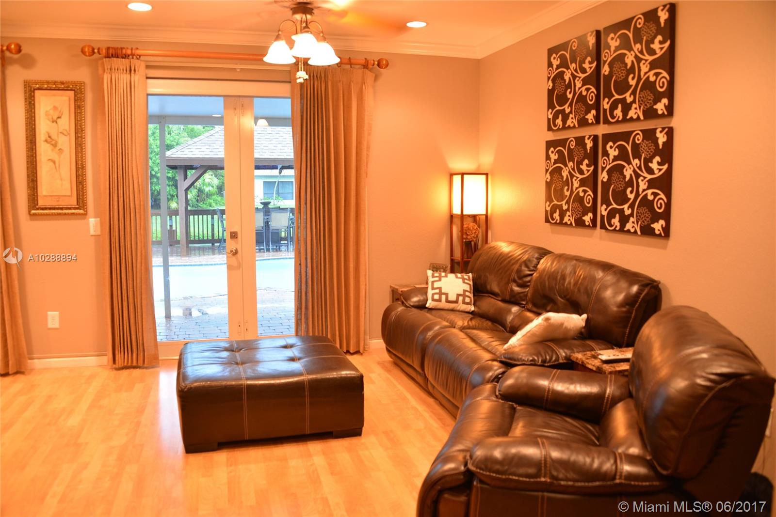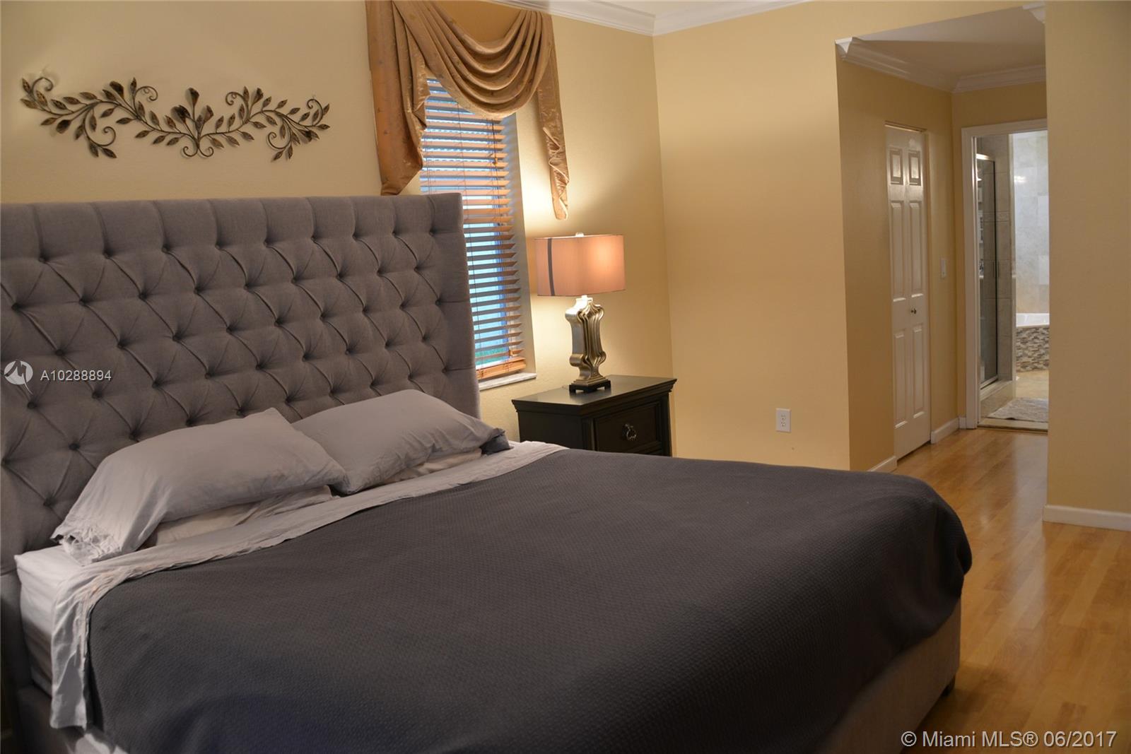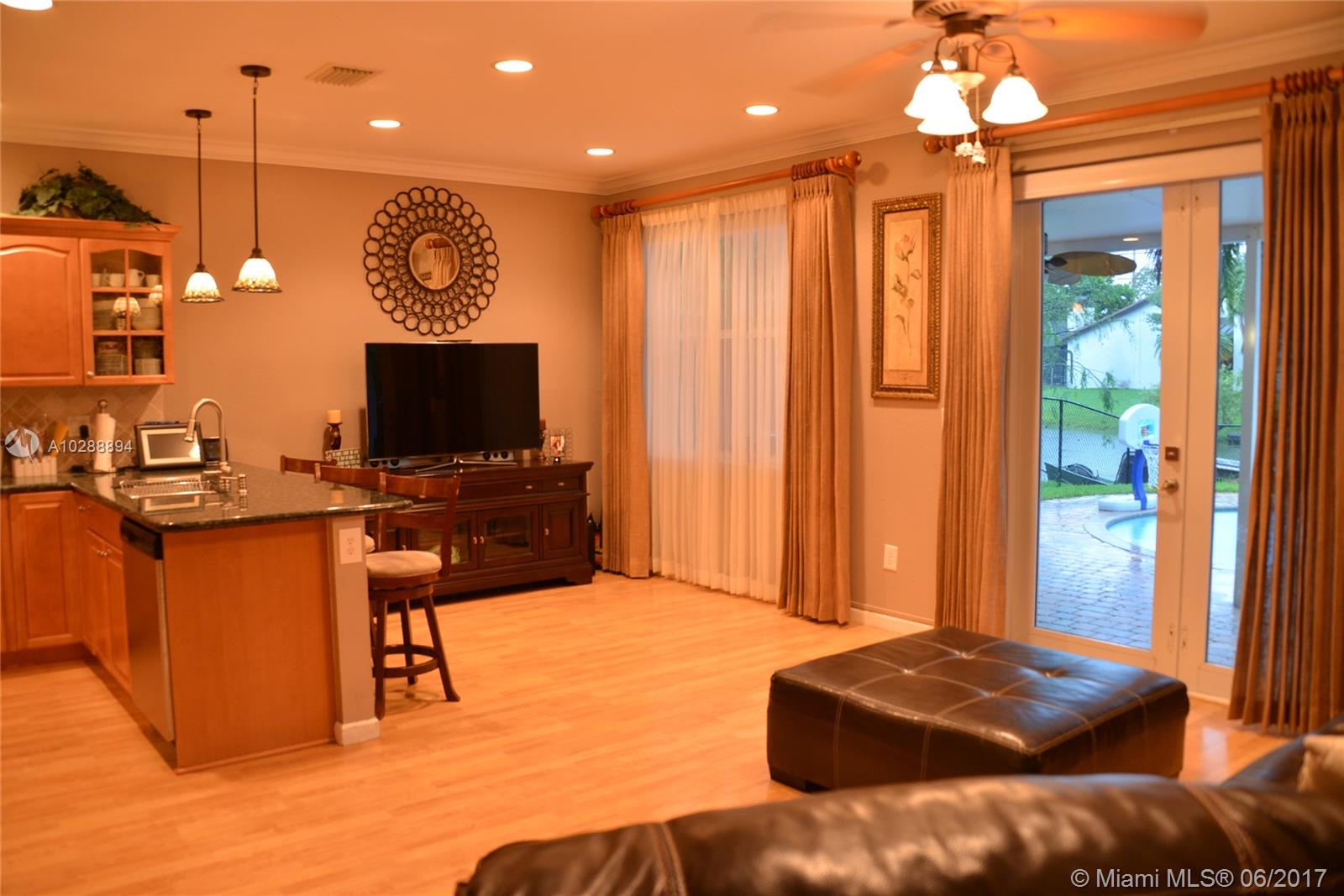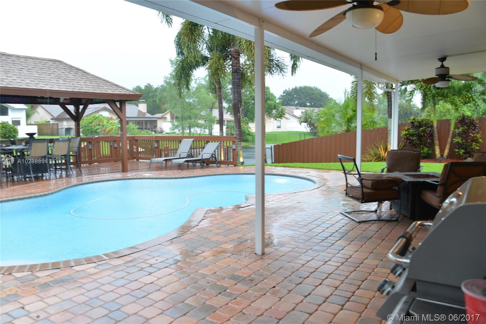 One of kind listing in the ever popular Cooper City, Rock Creek subdivision. This unique home was built in 2005 and the floor plan is original to Rock Creek. Located on the quiet streets of Quaypoint this home has a fantastic must see first floor master bedroom with his and her walk-in closets over-looking one of the many lakes of Rock Creek. Relax around the pool and grill your dinner under the amazing gazebo. This house has a den/playroom upstairs that could easily be converted into a 5th bedroom. Experience wood flooring and crown molding throughout the house. Fabulous backyard perfect to entertain your friends night and day. Extended driveway to accommodate all your parking needs without parking in the street. This listing will not last!