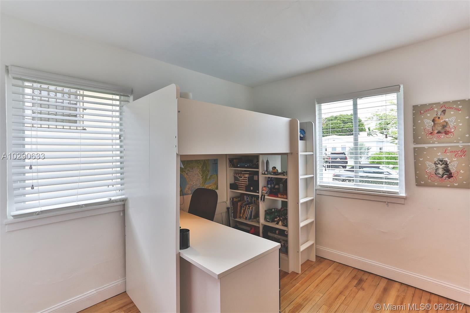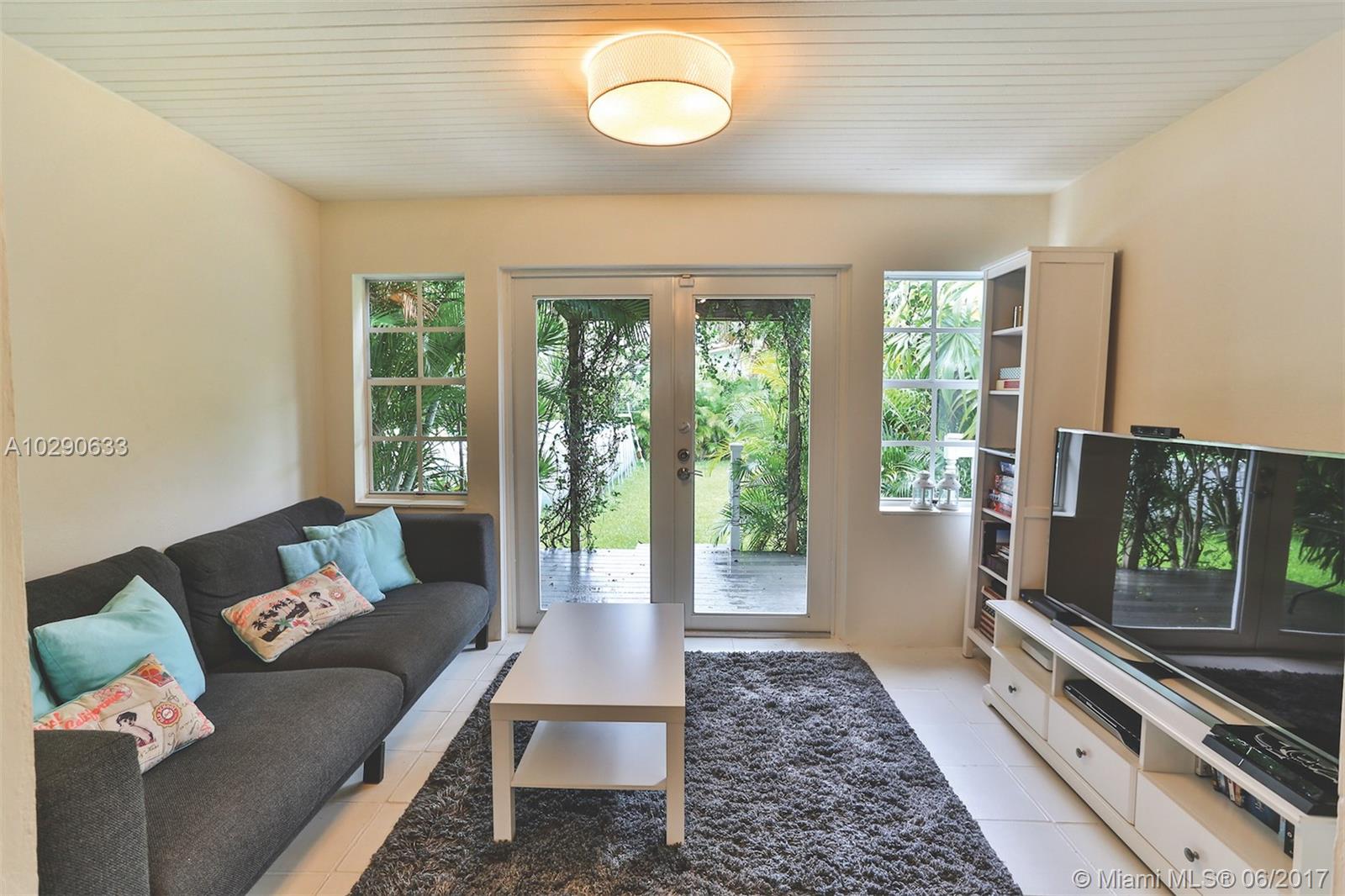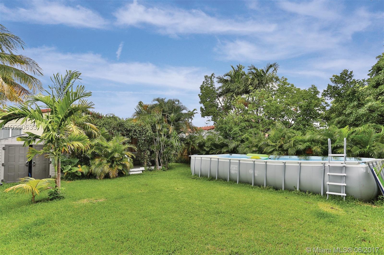 Art deco gem in the desirable Town of Surfside! This charming home has a great mix of original details and modern features, such as cathedral ceilings, lovely deco fireplace & wood floors, plus a newer tile roof and updated windows, electrical wiring, and water pipes. The house has 2 bedrooms and one bathroom, plus a large storage room (converted garage) that could be made into a 3rd bedroom and 2nd bathroom. All of the appliances in the home are only one year old. The huge, private backyard has a deck and an above-ground pool. Best of all, this house is just 3 blocks to the beach! Walk to the beach, Surfside community center/pool, Four Seasons Surf Club, restaurants & Bal Harbour Shops! Zoned for A rated Bay Harbor schools. Call today!