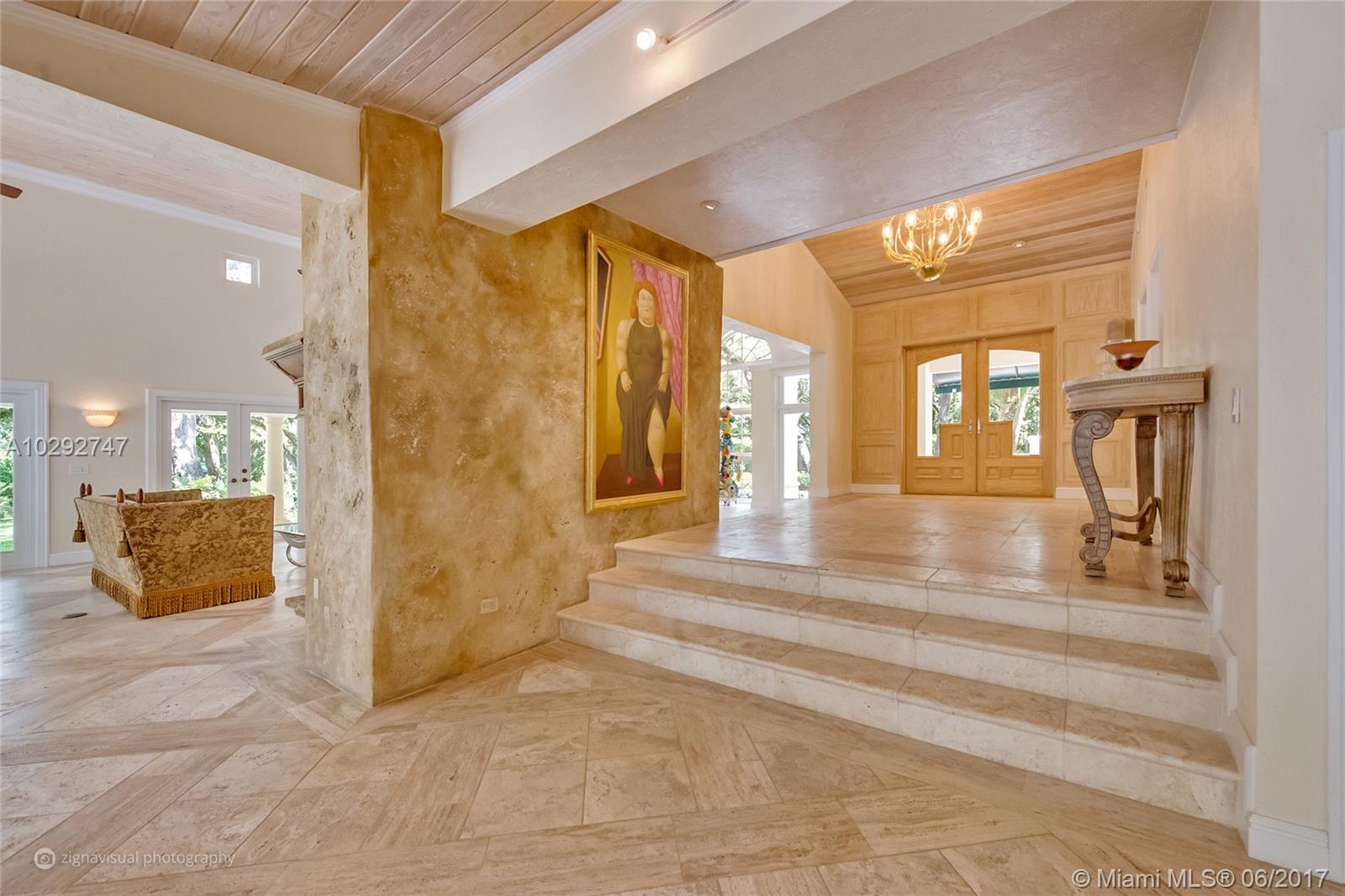 Set on a sprawling 1.5 acre corner lot overlooking a peaceful lake this elegant state enjoys beautiful surroundings in the most desirable gated Snapper Creek. There are generously sized interiors with open plan reception rooms and outdoor spaces for grand entertainment. The property consists of 6 bed/5.2 baths, gourmet kitchen, dining room with fireplace, a grand Master Suite, walk-in closets, marble and wood floors, open terraces and patios adorned with stunning 100 year old trees.