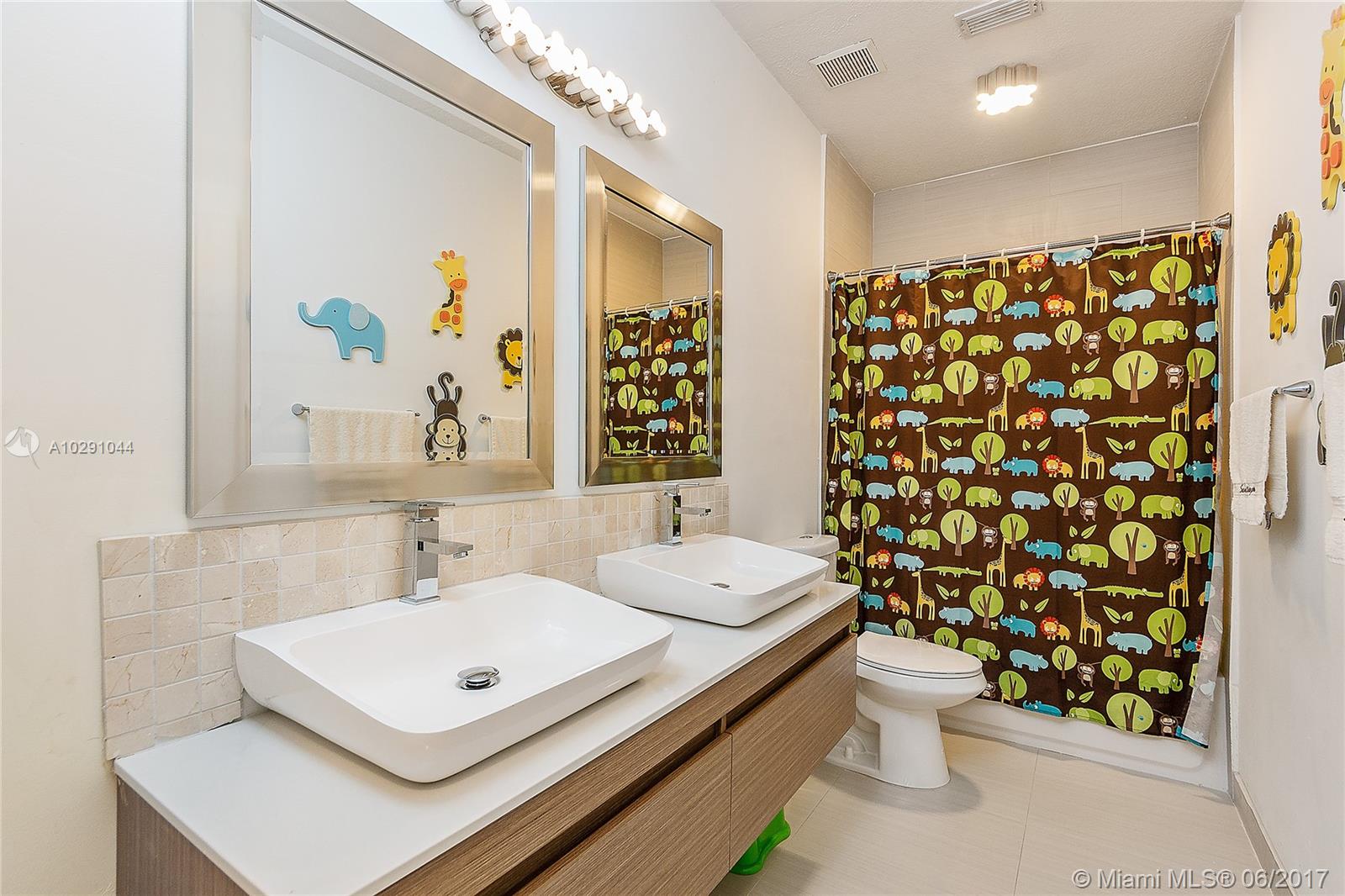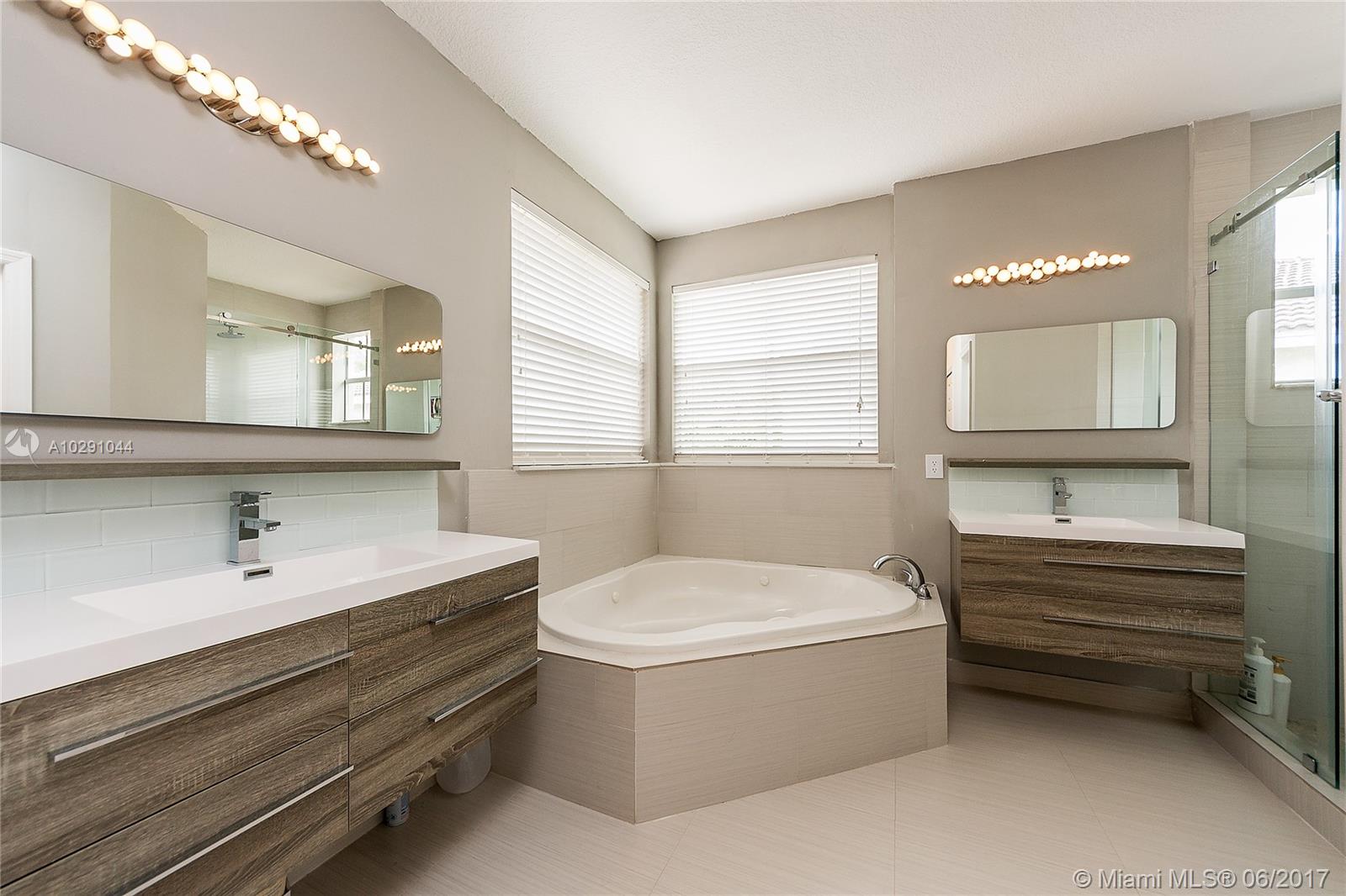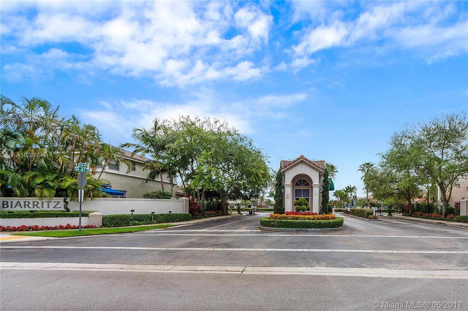 Mediterranean residence in Biarritz guard gate community of Doral, extensively remodeled= everything is new! Porcelain & wood floors, new doors, new stainless steel appliances, new kitchen & bathrooms, new central a/c. Freshly painted in/out, new glass stair railings, master suite w/ shower & jacuzzi tub. High ceiling, garage split and added children's play room. Low HOA fee $235/month. Includes guard gate 24/7, walled and landscaping