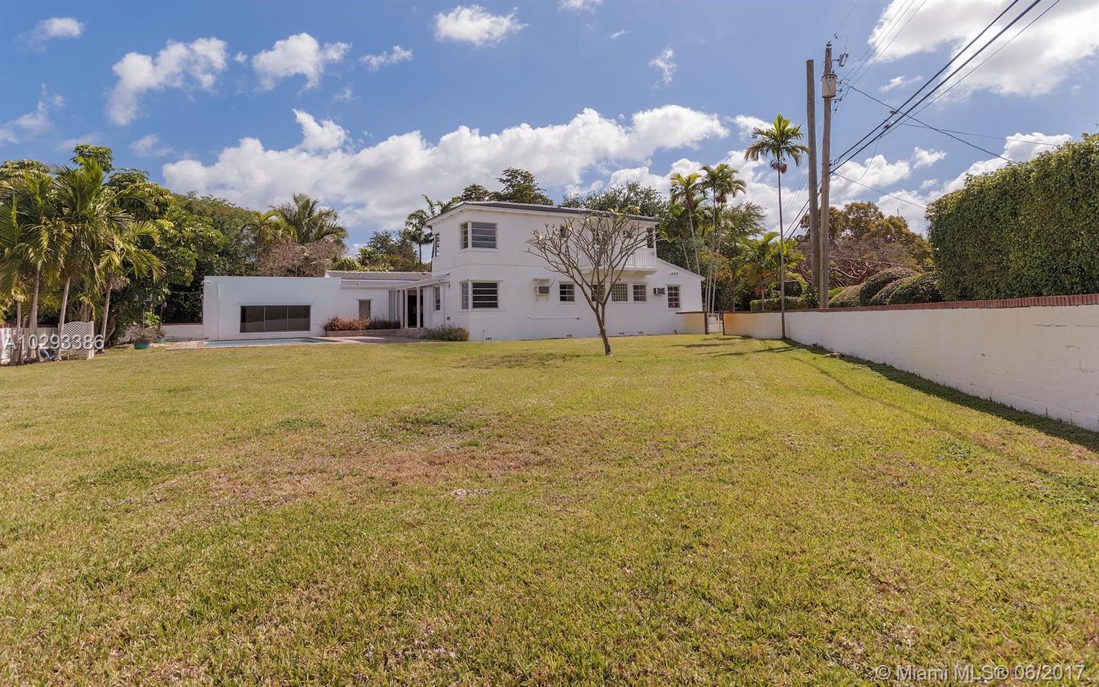 2 STORY MIAMI SHORES HOME, FIRST TIME ON THE MARKET IN APPROX. 30 YEARS. BIG WALLED LOT, POOL & PATIO. 5 BEDROOMS + OFFICE W/FULL BATH; 4.5 BATHS IN TOTAL. GARAGE WAS CONVERTED TO LARGE ENTERTAINING SPACE OVERLOOKING THE POOL. LAUNDRY & STORAGE ROOM WITH ½ BATH. GREAT SPLIT PLAN WITH PERFECT NANNY’S SUITE. THIS HOME NEEDS UPDATING. NEW TILE ROOF IN 2015. WOOD & TERRAZZO FLOORS. BIG OPEN LIVING SPACES GREAT FOR ENTERTAINING, WET-BAR. CENTRAL A/C.