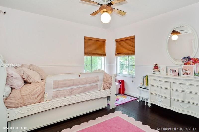 5Brm/4Ba PLUS LOFT. Youthful, pretty home with ALL the right details. Large fenced backyard on lake. Prestigious gated-guarded, happy place to live... Minutes to EVERYTHING you can think of. Wood floors in all bedrms. Natural light with lots of windows. Accordion shutters. Balcony overlooking wide lake, Closet systems, large walk-in closets. Plantation Shutters, Intercom, large pantry. Master & 5th brm downstairs. Jack & Jill bathrm. 2 new A/C in 2013. W/H 6 mo new. Best schools. Well-kept. Low HOA