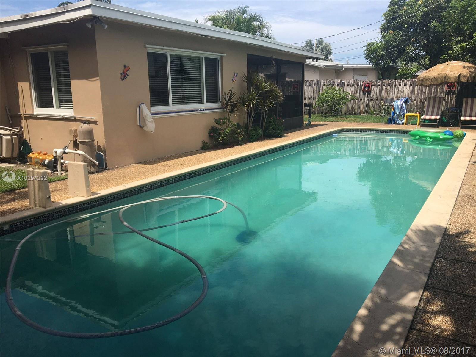 Fabulous 3/2 with super sized 16X44 pool! Remodeled home featuring foyer entry, laminate flooring throughout and orange peel ceiling. Remodeled kitchen with eat in nook and snack counter features wood cabinetry, granite, stainless steel appliances with newer dishwasher and natural gas stove! Family room has double French doors leading to a spacious screened in patio, fenced in yard and pool. Converted garage is used as a multi purpose room and is not part of the true 3 bedroom count. Circular driveway! Impact windows and doors (except panels on front door and accordion shutters on back set of sliders). Plumbing lines (in and out) replaced with permits. Central a/c less than 5 years old.