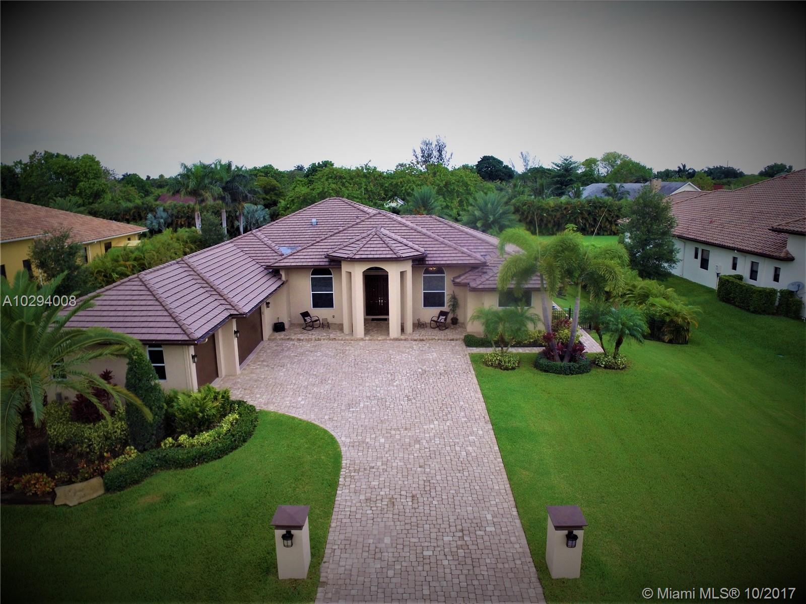 Beautiful 5 bedroom, five bathroom + office in the prestigious Plantation Acres. This home sits on a cul-de-sac street with only 6, custom built, million dollar homes. Features include 24x24 porcelain tile, S/S appliance, impact windows, split floor plan, bonus mother-in-law suite, outdoor kitchen, mosquito mister throughout the exterior permitter, security cameras, 3 car garage, and pool. Amazing, private backyard on an acre lot!