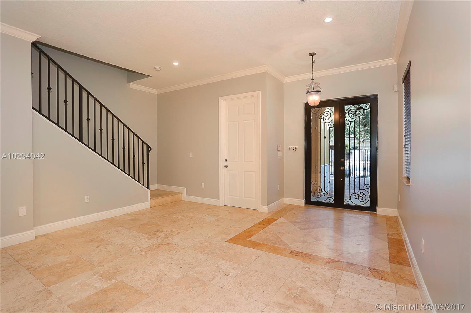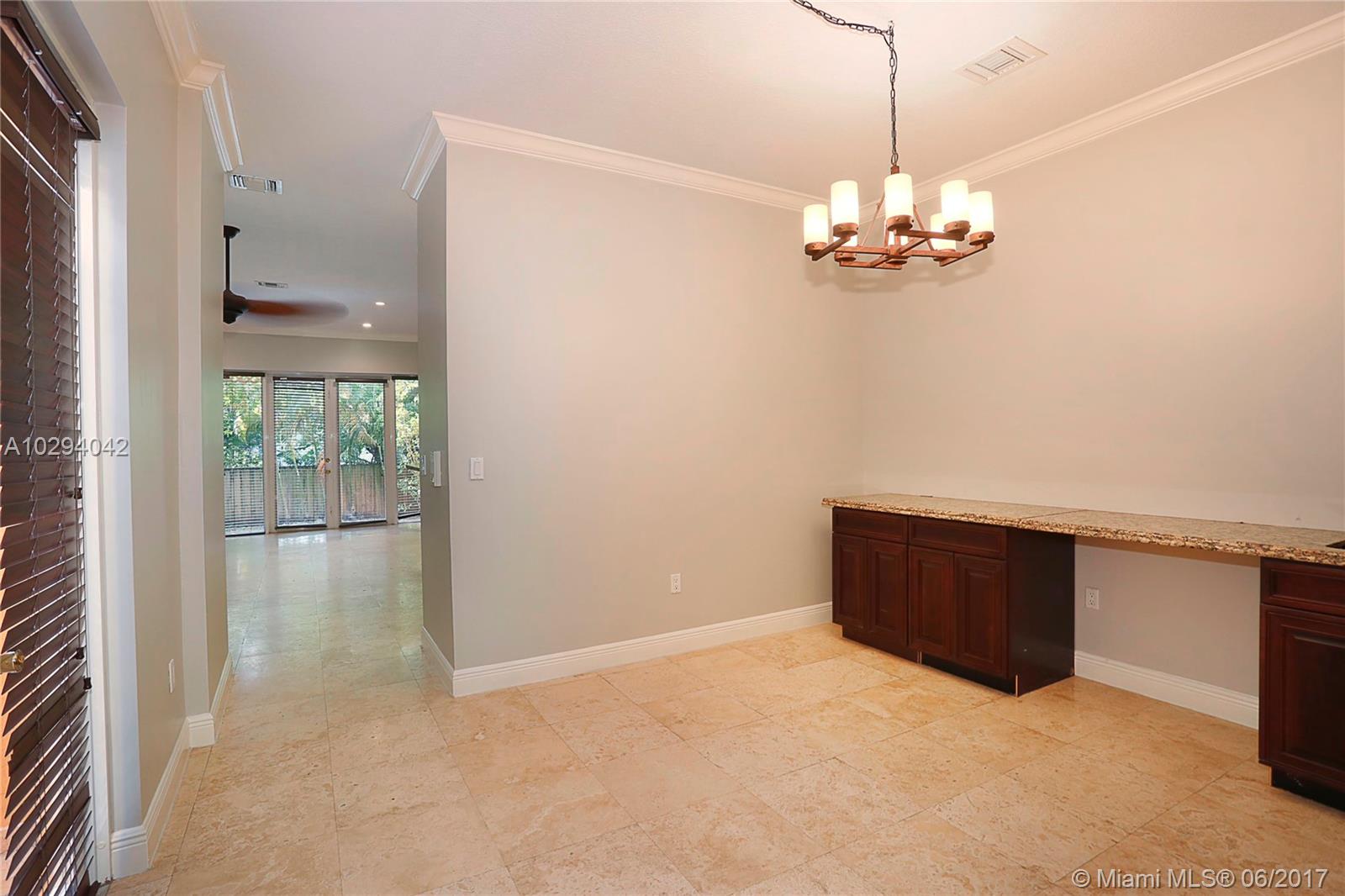 Gated townhome close proximity to all of the Groves finest amenities including parks, marinas, restaurants, shopping, entertainment and more. Spacious and light filled two-story layout. Kitchen features stainless steel appliances with beautiful wood cabinets and granite countertops. Family room and kitchen have views of the garden. Formal dining room includes a wet bar with built-in cabinetry and granite countertops. Master suite has a private balcony and en suite bathroom with marble surround separate tub and shower. Home has one car garage and additional parking behind the gate. Central location with easy access to Coconut Grove, Coral Gables, Downtown, South Miami and beautiful beaches.