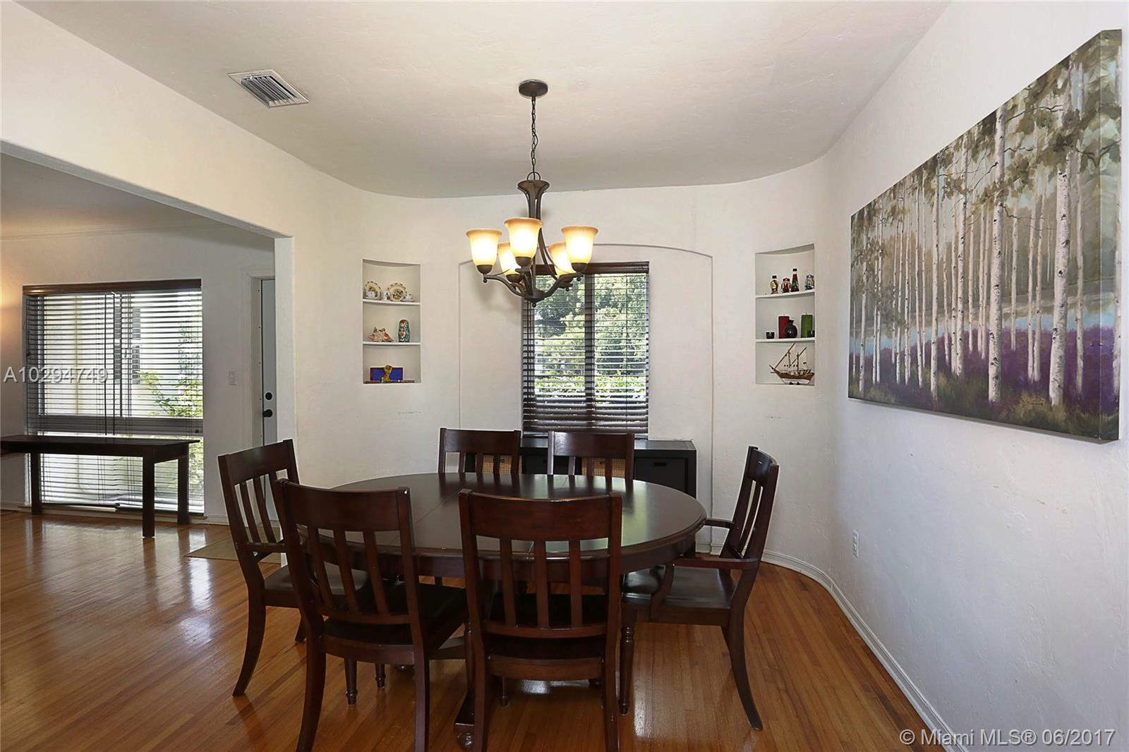 DRIPPING WITH CHARM, THIS EXQUISITE 3 bedroom 2 bathroom home in Miami Shores sits on a beautiful & private 9,300 SF lot filled with character! This 1940’s gem features: lots of natural sunlight, gorgeous art deco details throughout, original wood floors, impact windows & doors, new A/C, recently updated kitchen, formal dining room & one car garage. The homes light filled family room leads out to an expansive, lush & fenced backyard with plenty of room for a pool. Perfectly located on a peaceful tree lined street.