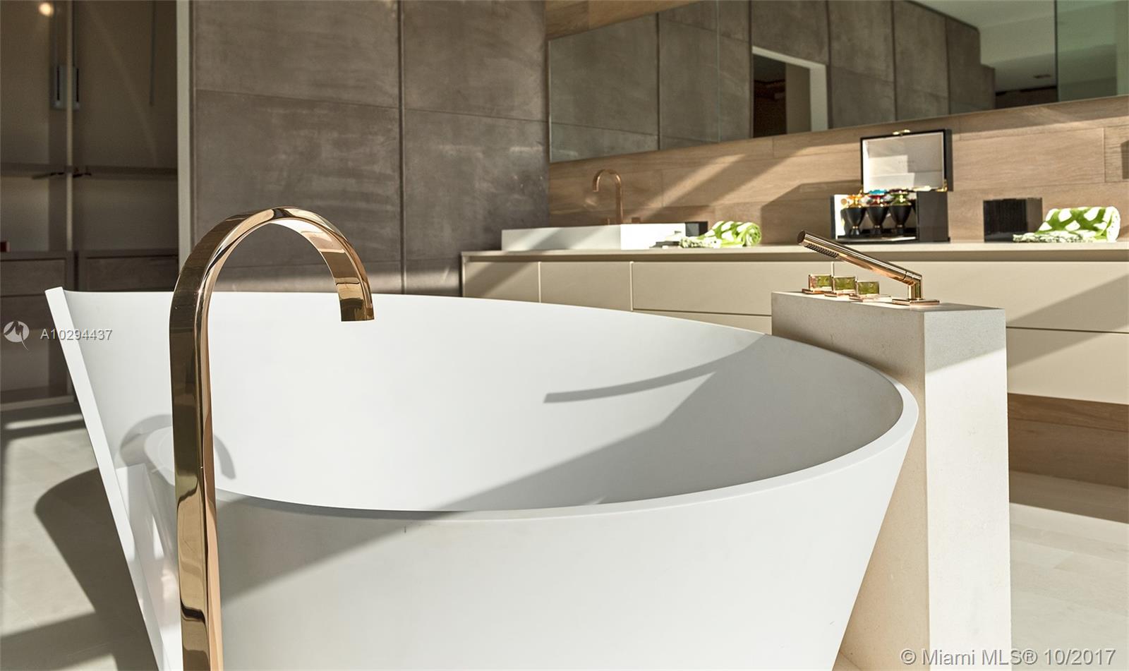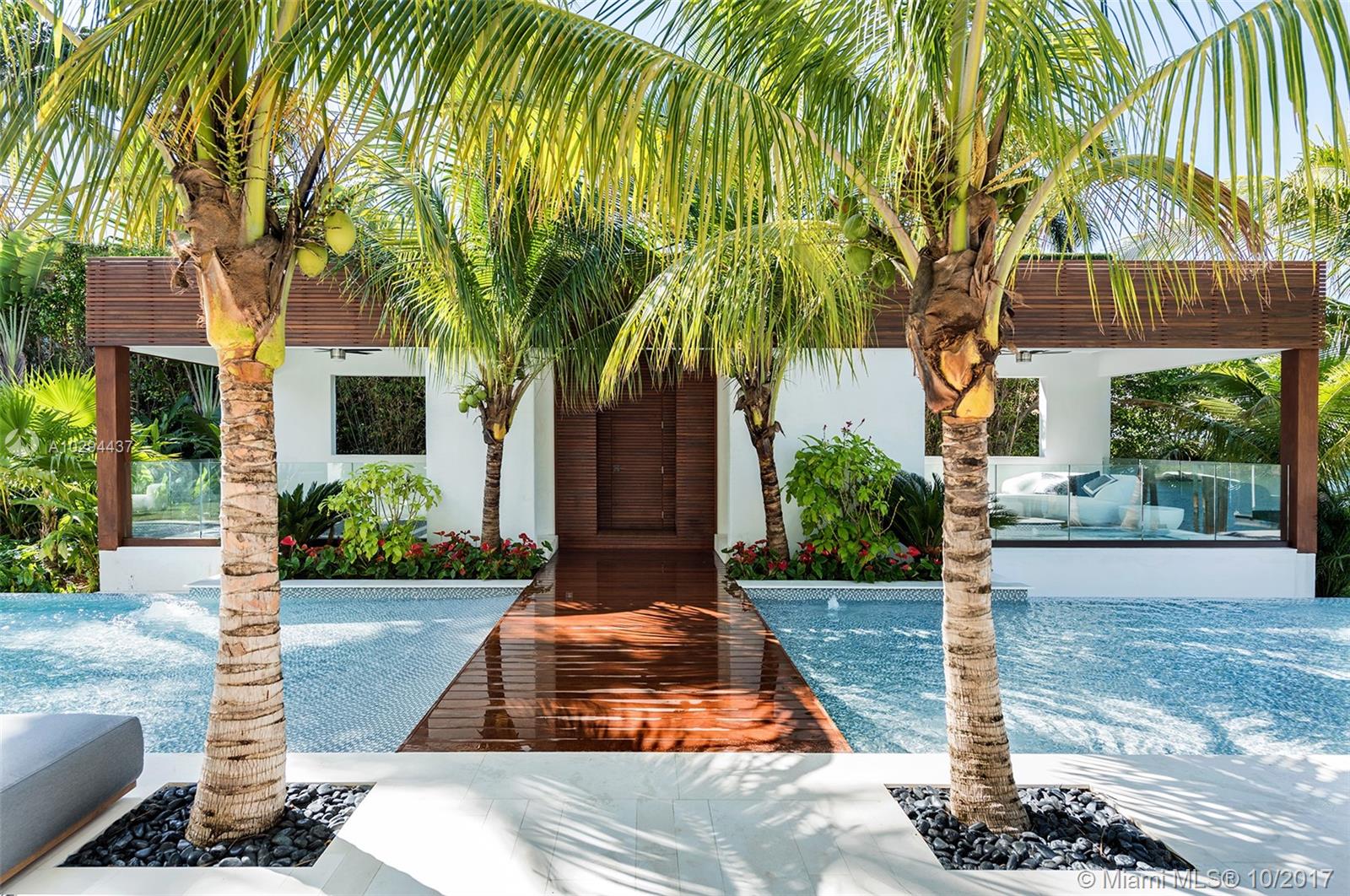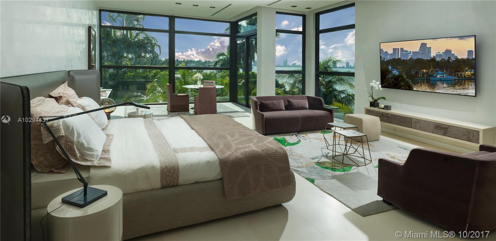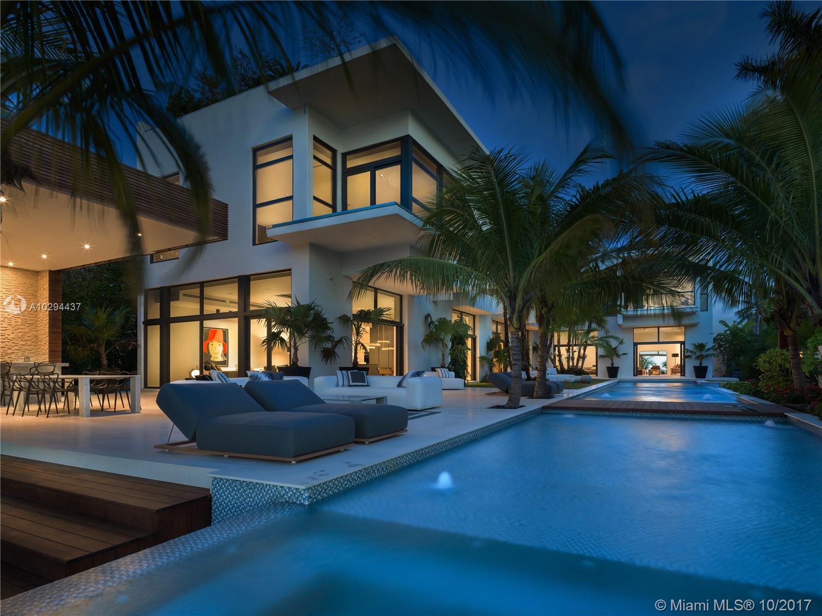 Ready for immediate enjoyment. Contemporary oasis w/ 11,500 sf of curated living & open bay sunsets. The sleek interior exudes unprecedented level of craftsmanship. Details include suede walls, ultra-luxury Italian furniture & Hermes decor for a turn-key living experience in Haute style. 100-foot mosaic pool w/ infiniti jacuzzi, BBQ pavilion, gym, massage lounge and private spa. 100 ft of expansive waterfront with dock & boat lift. Elevator to a massive rooftop garden w/ breathtaking Downtown Miami views.