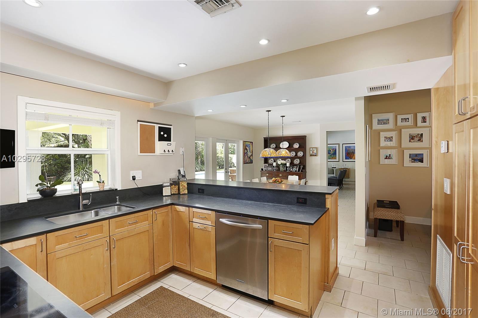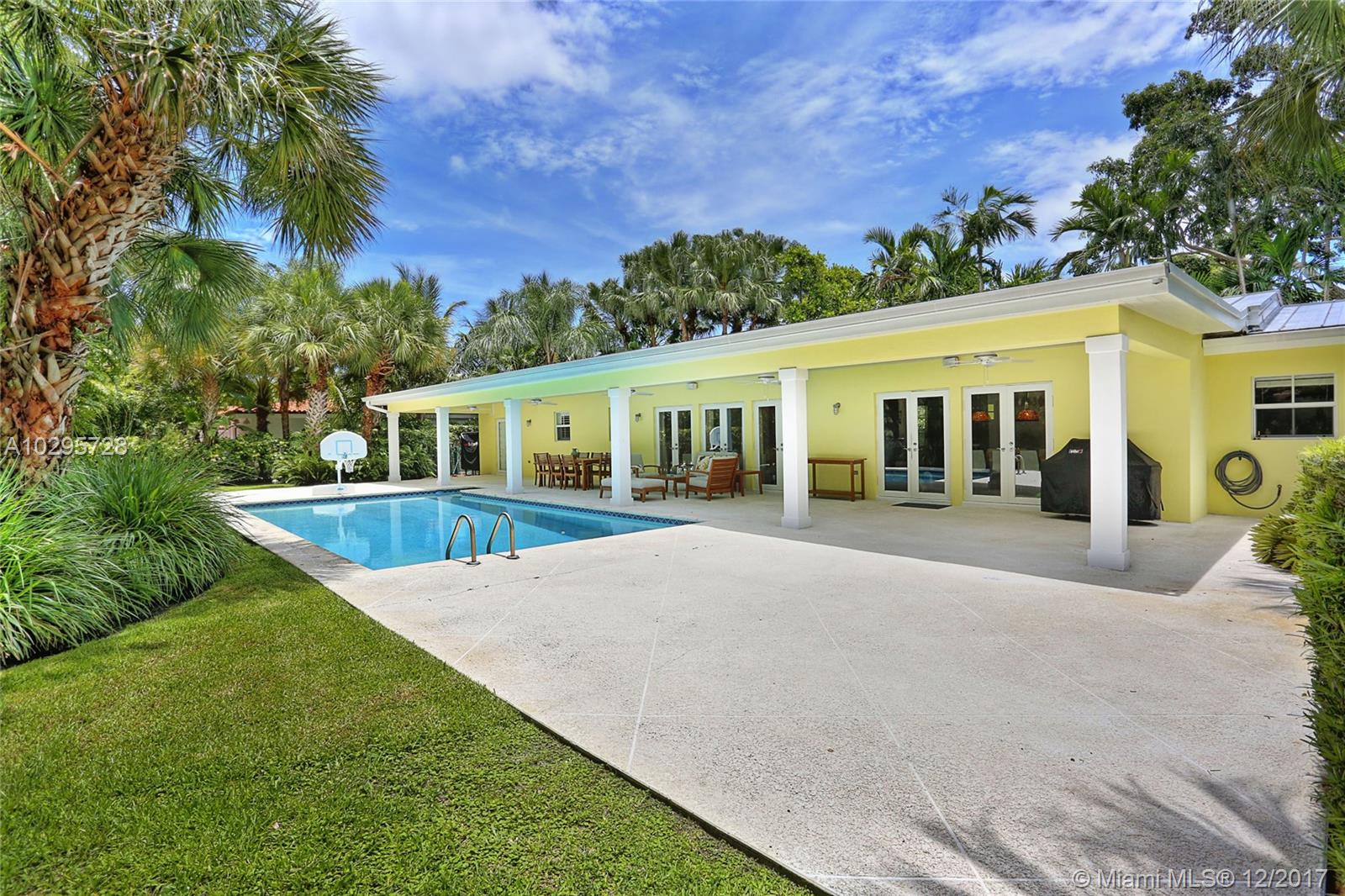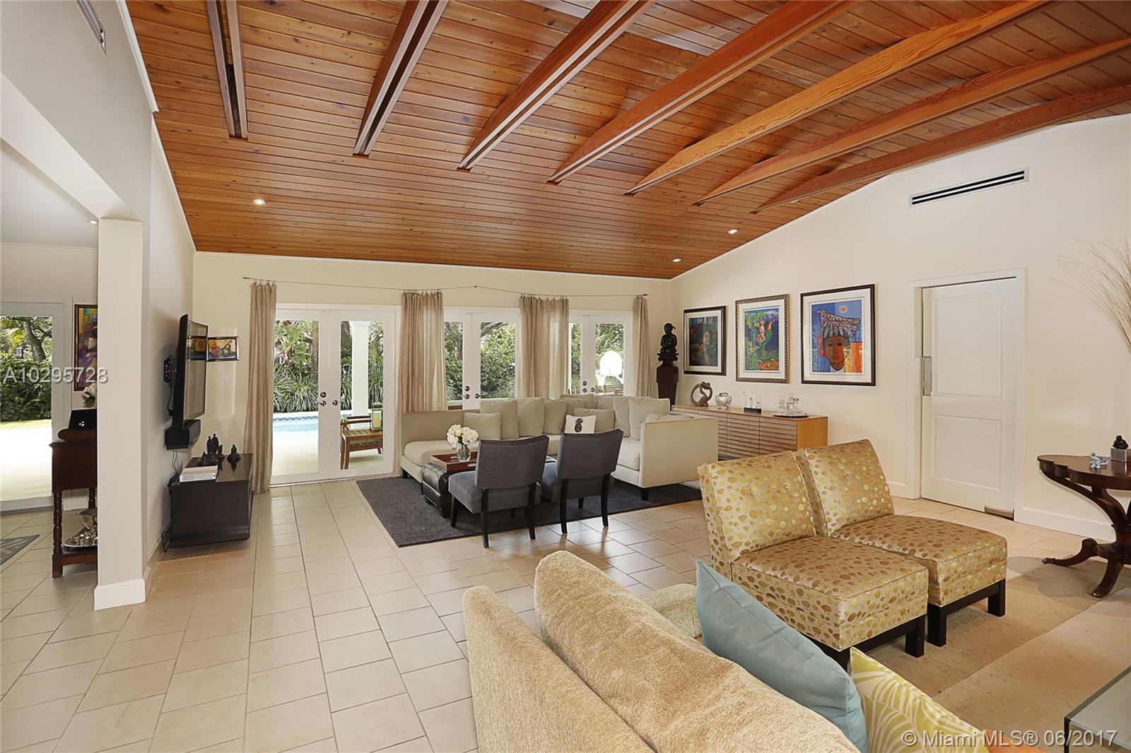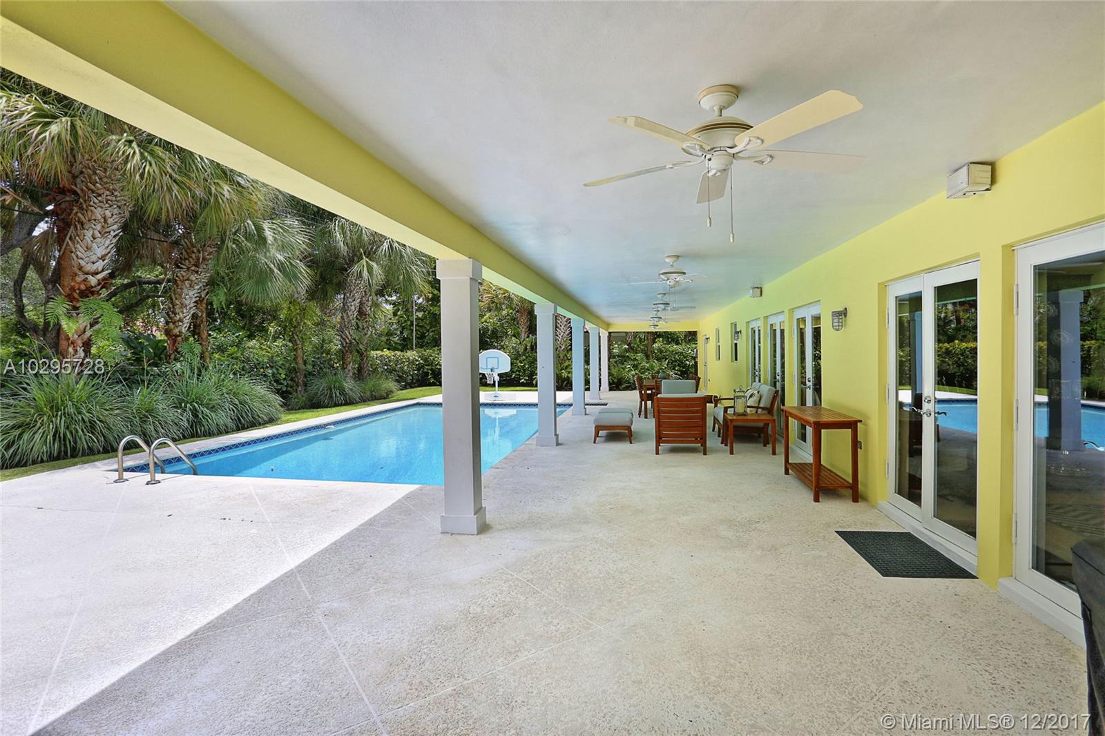 Go ahead and grab a milkshake at Wayside Market as you head to this wonderful North Pinecrest home! Located on a quiet street surrounded by lovely, updated houses, this one is a stunner. Living Area=2,556 sf. The foyer entry leads into a spacious living room with vaulted wood ceilings and French doors opening out to the deep covered porch that is truly another living space. Beautifully updated, the open kitchen looks over the dining and family rooms. This 4 bedroom/3 bathroom home has a split floorplan perfect for guests. The master features soaring ceilings, large walk-in closet, and recently renovated bathroom. Impact glass windows and French doors, laundry and storage rooms, 14,985 SF lot, sparkling pool, metal roof, and Pinecrest Elementary…this house has it all!
