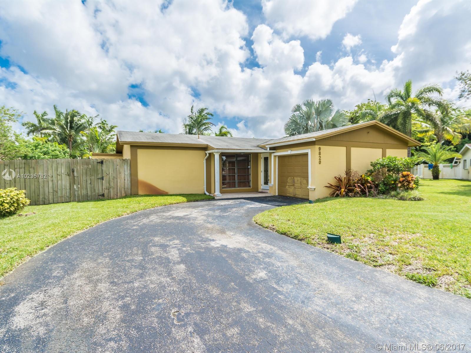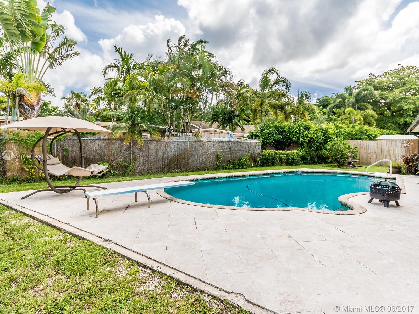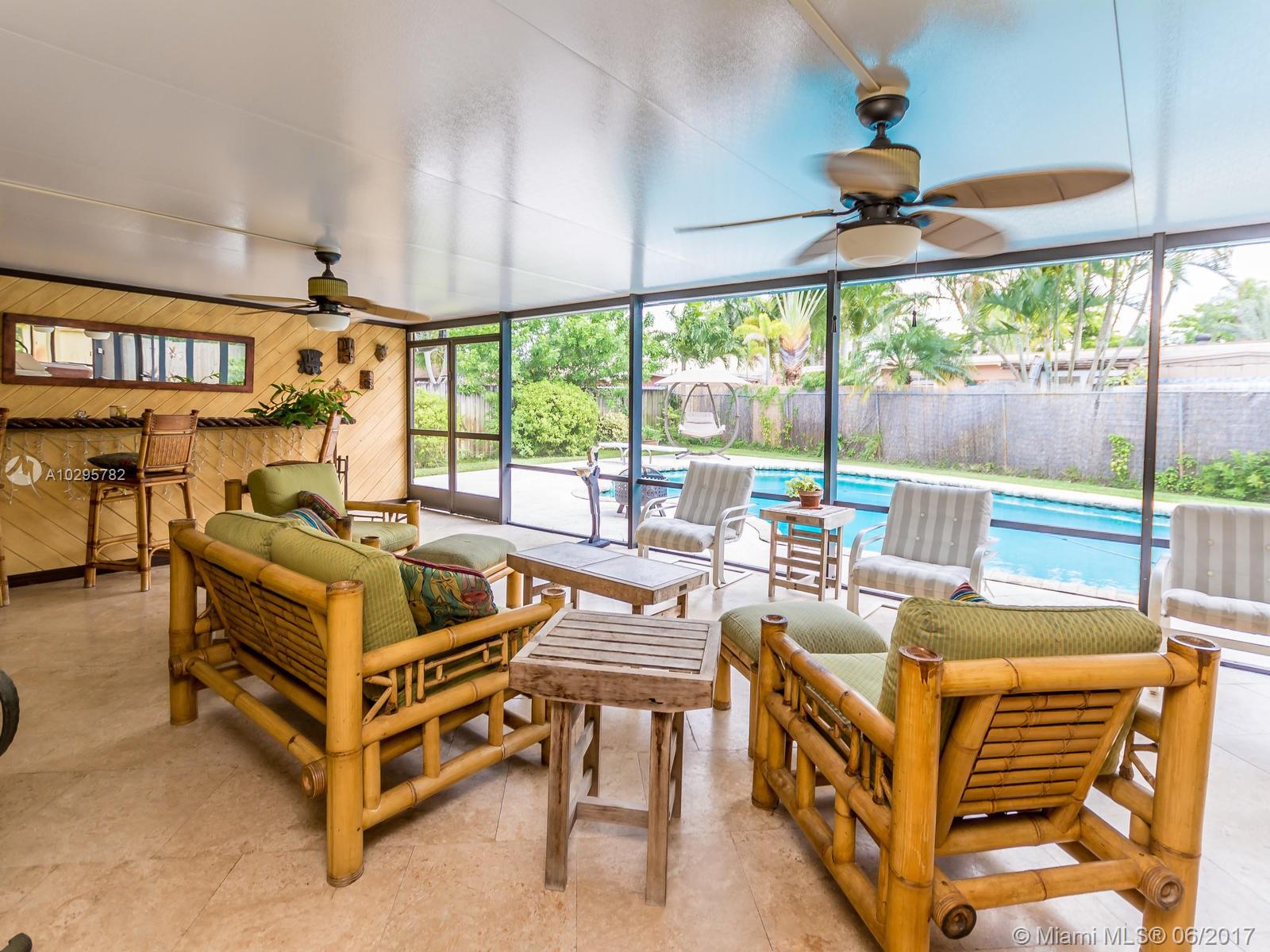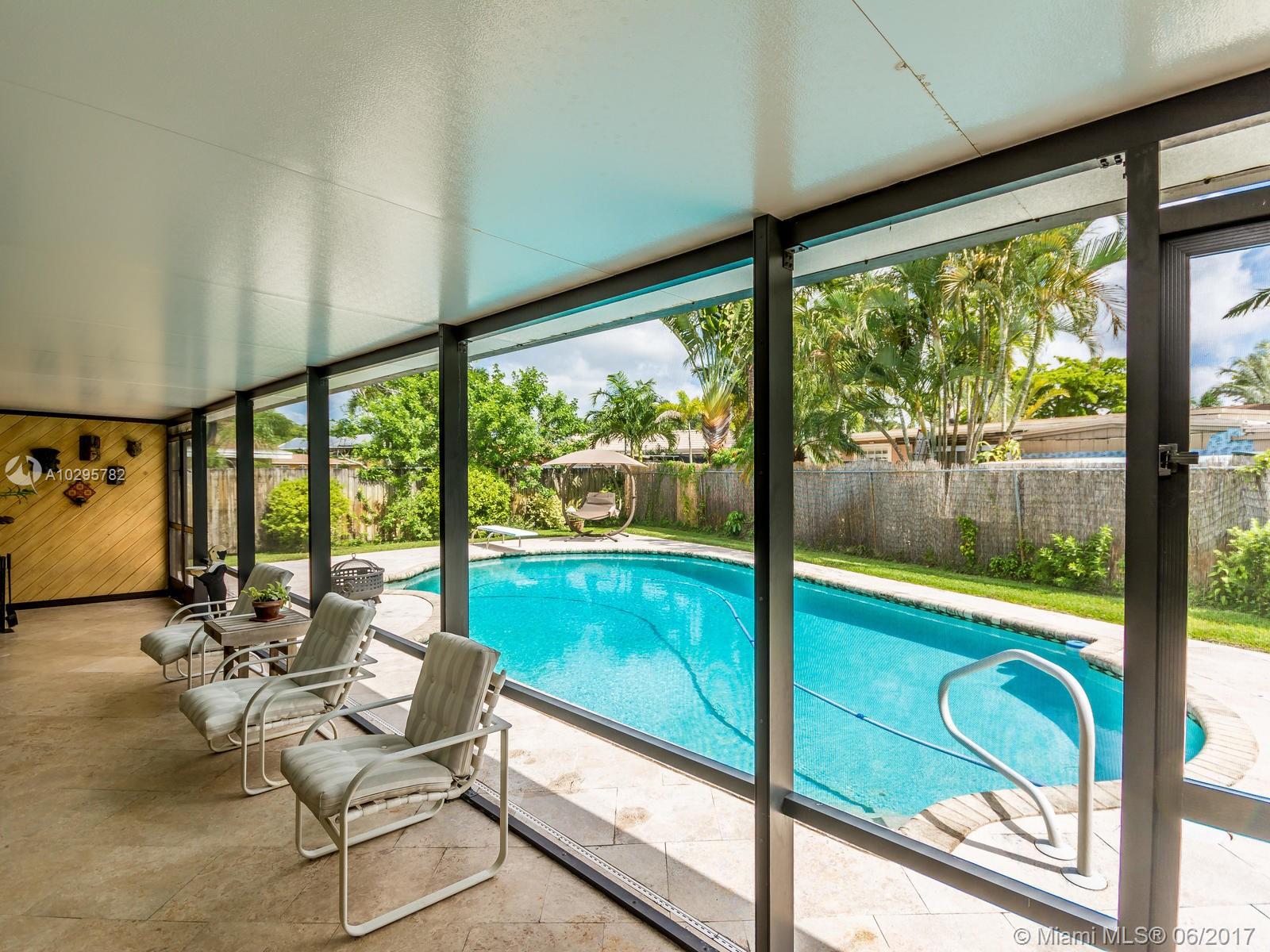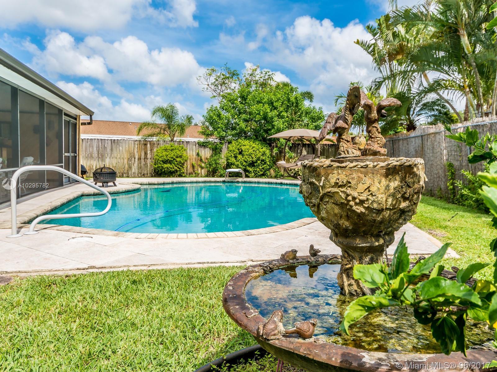Wow! A unique South Florida home built to amuse. The spacious screened Florida room is perfect for entertaining; complete with wet bar, travertine floor, outdoor heated pool, and pleasant backyard. It is located in the desirable area of Westview, Pembroke Pines, built on an 8,266 sq ft landscaped lot. It is on a cul-de-sac with a large driveway. The house has a 2007 roof and has been extensively remodeled throughout. The kitchen has S/S appliances, wood cabinets, a bar, and a pass through window to the Florida room. Laminate flooring throughout living areas and bedrooms. Main bath has tile throughout and a jacuzzi tub. Master bedroom has a large walk-in closet and built in cabinet, and a stone tiled shower in the master bath. A perfect house for outdoor living a must see property!