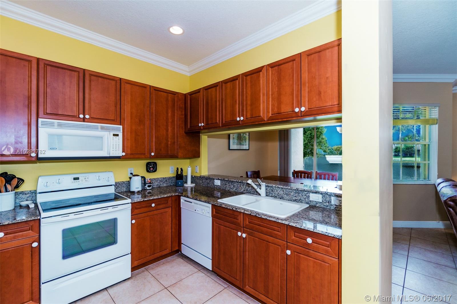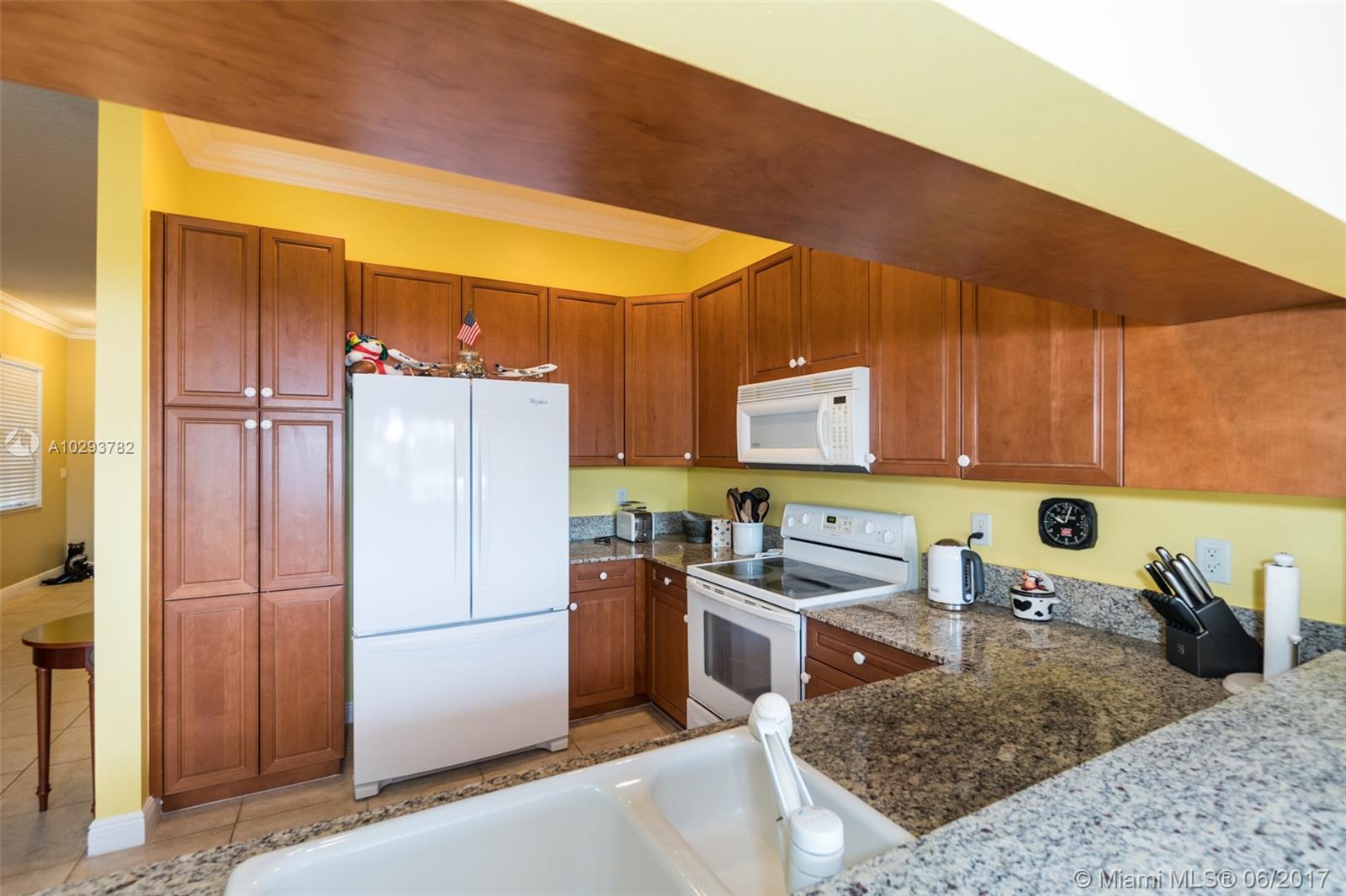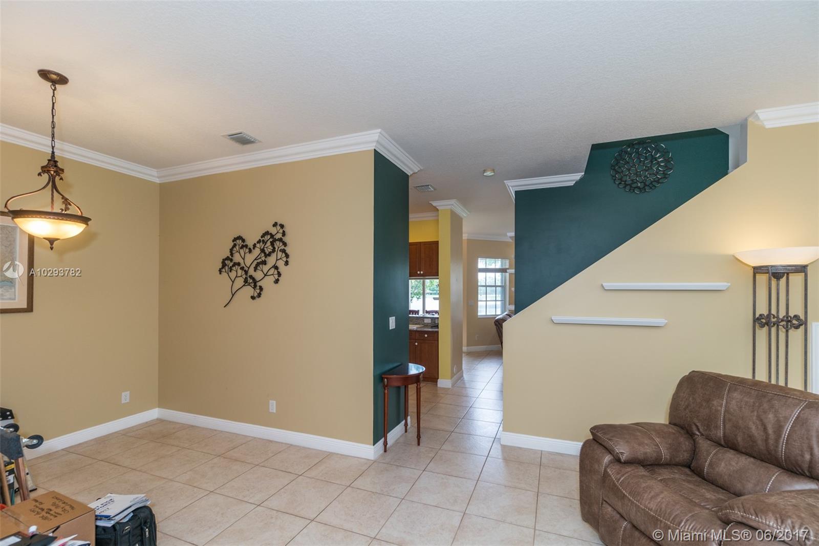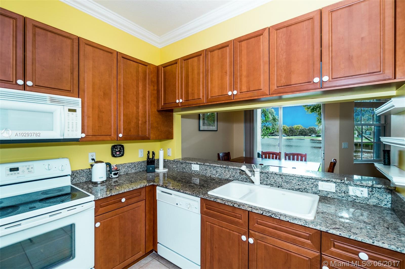 Highly sought after corner unit with beautiful lakefront views. Very well maintained townhome with gorgeous kitchen with granite counter tops and wood cabinets. Tile floors and expansive ceilings with crown moulding throughout living areas. Large breakfast area with tranquil lake view. Covered patio to watch beautiful lakefront sunsets from. Accordian hurricane shutters. Newer AC unit, washer, dryer & refrigerator installed 2016. One car garage. Centrally located in heart of Davie near Nova University, many shops and restaurants and easy access to 595 and turnpike.