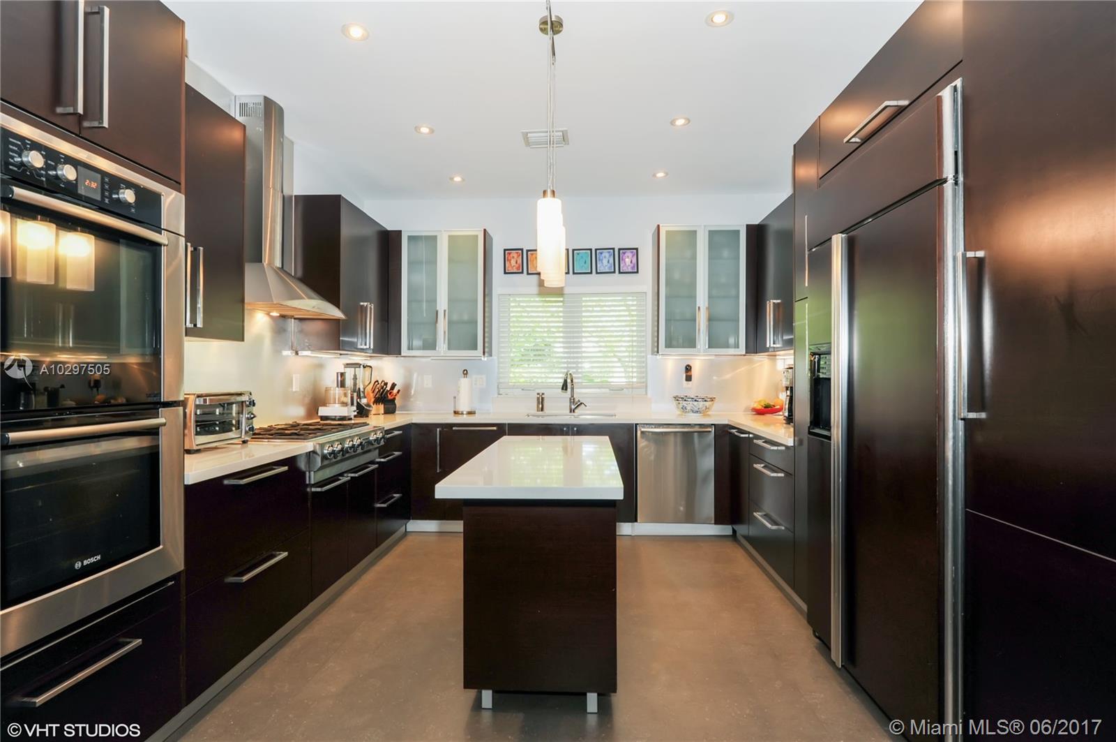 Best location in Miami Shores! East of USI across the street from multi-million dollar, bayfront mansions. Gorgeous mid-century gem remodeled in 2008 with 9.5ft. ceilings, rare 24X24 black Cuban tile, impact windows and doors, and 8ft. interior and exterior doors. Home boasts natural gas appliances and whole house generator, dual zone A/C and top of the line kitchen with Bosch, Jenn-Air, and GE Monogram appliances. Large walk in closets in master bdrm. Large backyard with plenty of room for a pool. Owner/Agent