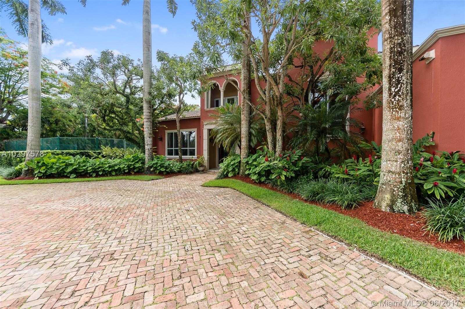 ***OWNER DOWNSIZING***2 STORY MEDITERRANEAN**PARADISE FOUND*SECLUDED LOCATION*5 bedrooms, 4.5 baths + Cabana Pool bath**6360 SF of luxury*VOLUME CEILINGS*Marble FLRS DWNSTRS & WOOD FLRS UPSTRS*Formal living & dining rms*Breakfast rm*Kitchen w/GRANITE COUNTERS*ISLAND*SS appliances*Spacious family rm*3 zoned A/C*Nestled on lushly landscaped .94 Acre lot*ELEC gated entrance*North/South tennis court*Tropical open pool*Rfd patio*Brick paved circular drive w/FOUNTAIN ACCENT*Side entry 2-car gar*SHOW W/PRIDE!
