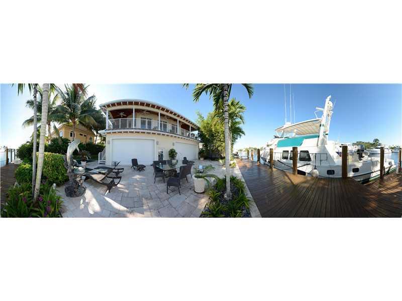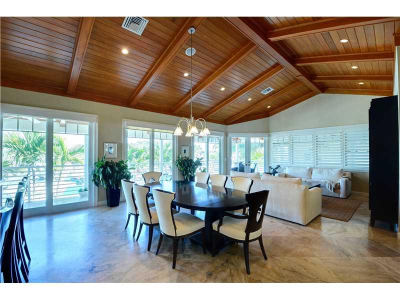 Bright open 2nd floor living space with vaulted cypress wood ceilings, 3 walls of windows overlooking the canal and port waterways. The kitchen gas wolf stove, cooking island and glass block backsplash. Huge master suite with double walk in closets, stone walls in master bath. Wenge wood floors in Bedrooms and Den. Miami Interior Designer Created this space. Elevator. 12+ A/C car garage or personal Toy Box, double garage doors in front and another set out to patio / dock. Custom pool, 80' seawall / dock
