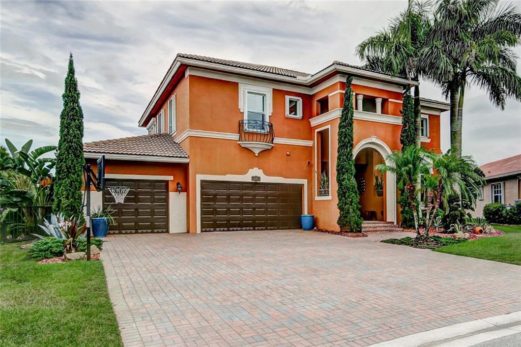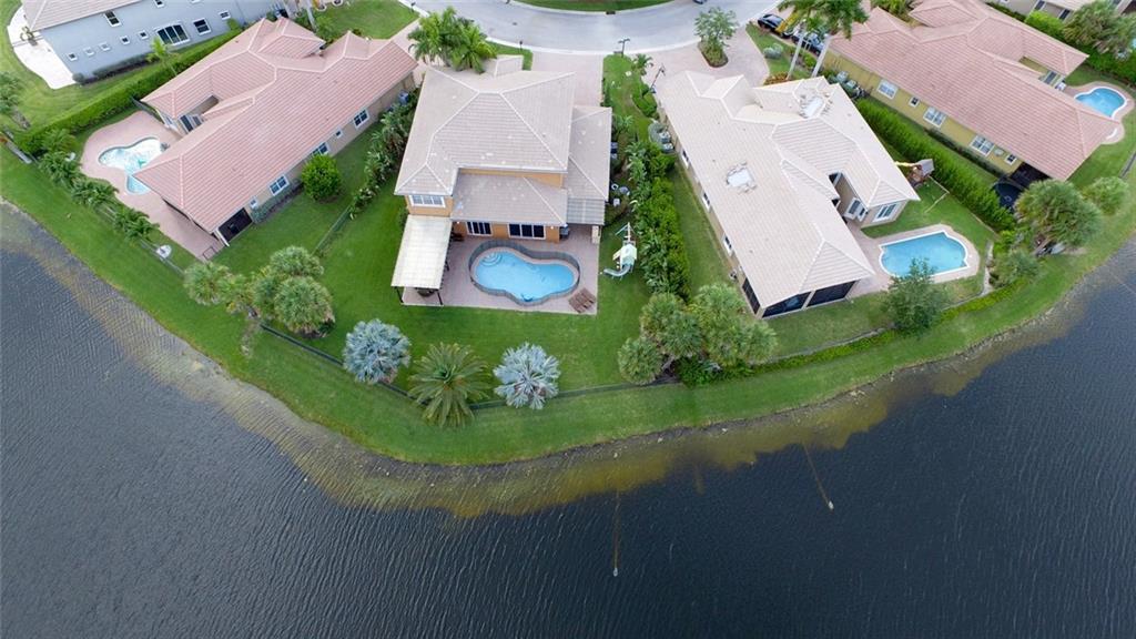 Amazing 1/3 acre lot, Double Water View, Highly Renovated Home w/tons of upgrades, Summer Kitchen w/BBQ, Covered Pergola w/Outdoor TV & more. Downstairs: 1 bed/1bath, New Porcelain Tile, Expanded Family Room, Tall Ceilings & Wood Floors in Living & Dining, New Kitchen w/Granite, New Appliances Bosch Double Oven, Garage w/Built-ins. Upstairs: Huge Master Suite w/own living room, Wood Stairs, 3bed/1bath, computer area. Enjoy 2 resort Clubhouses, Guard gated Heron Bay Community.
