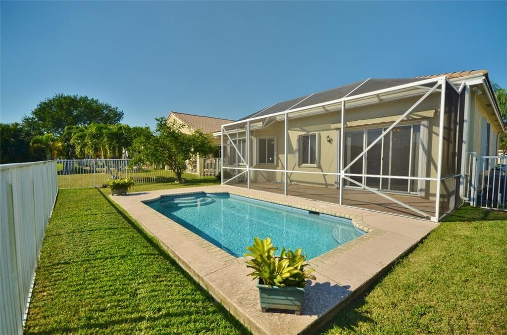 Lakefront Beauty is well cared for! 1 story model features split floor plan, 26 ft screened patio leads to inviting Pool & Lake views! Spacious kitchen with wood cabinetry, open to breakfast area, & 15' Family Room, makes this a great home for family/friends. Coffer ceilings and bay windows, add a special elegance. Interior Laundry, Screened Patio, accordion shutters, + guest 1/2 bath. Great schools, recently painted, & newer A/C. Guard gated + Rec center. Mtn fee includes lawn/landscape, cable,security