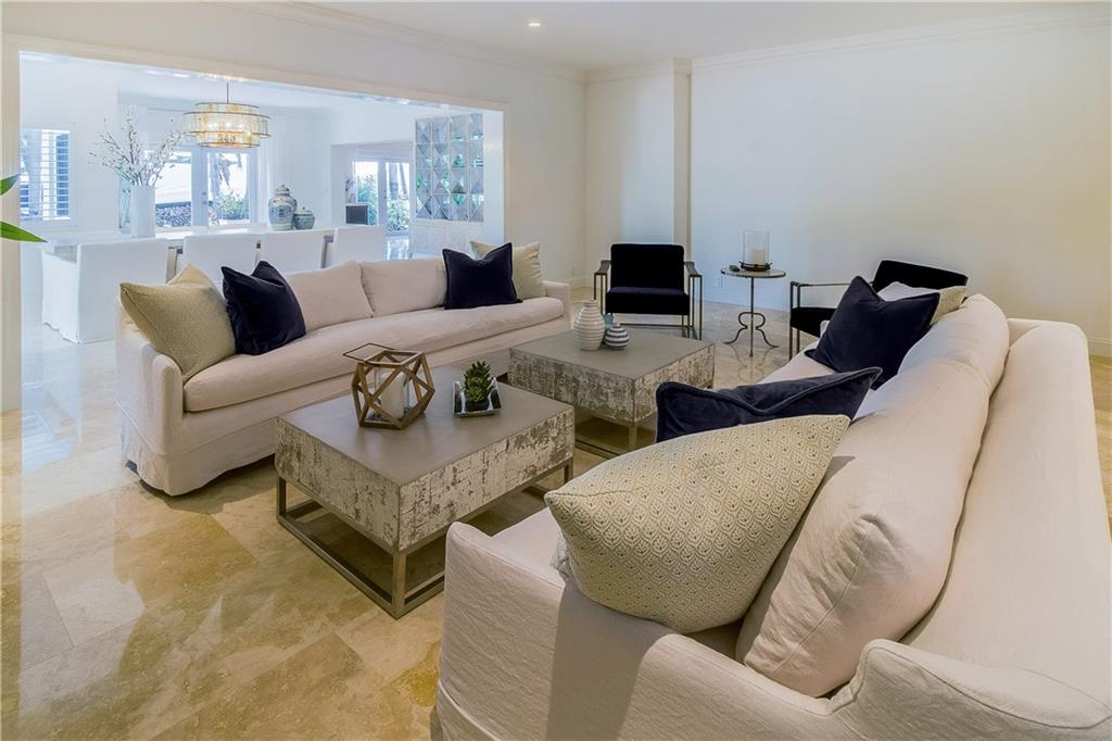 Just reduced $100k! Brilliantly redesigned waterfront home located 3rd lot from Intracoastal waterway. 4 bed/4 bath has been totally remodeled with stunning finishes. Chef's kitchen and Butler pantry by The Kitchenworks with top of the line appliances and leathered marble countertops. Balanced floorplan allows an abundance of light throughout, 9 ft ceilings, marble and hardwood flooring, all impact windows, french doors open to sundrenched pool area, lush tropical landscaping & fully equipped 85 ft dock.