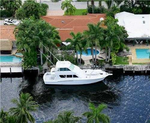 Great New River view near point on wide, deep canal and no wake zone. Listed for land value but house has many upgrades...pool, kitchen, roof. Isle of Capri located on coral ridge with high elevation. Excellent building site. Street has 5' setbacks allowing dockage for 65' yacht and larger building footprint. Walk to shops and restaurants of Las Olas and Beach. Large, new homes across street and across canal. Quick ocean access.
