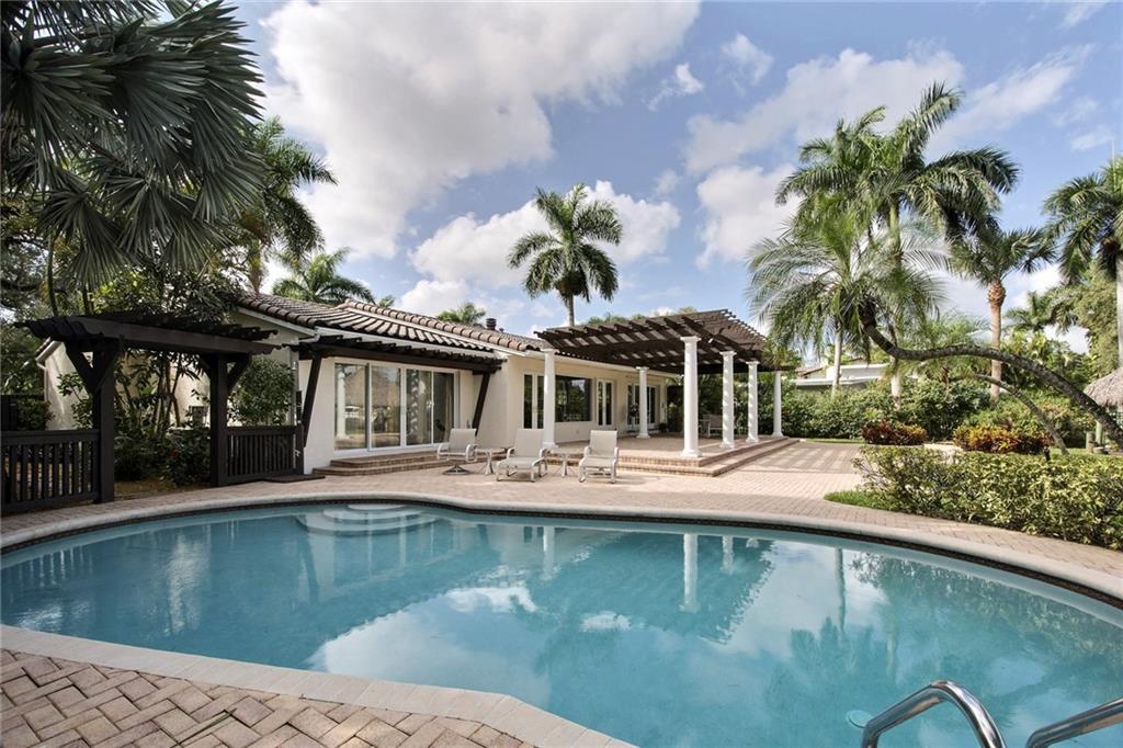 Breathtaking waterway views of the New River & a daily parade of yachts from almost every room. Spacious 1 story ranch home, gated entry with tremendous parking & outstanding curb appeal. Lush tropical landscaping, a soaring covered loggia, waterside tiki hut & oversized backyard & salt water pool overlook the river. Ideal for the avid boater with an expansive dock & power station. Volume/vaulted ceilings with a bright open floor plan. Large shed & shared generator. Sq ft. from bcpa believed accurate.