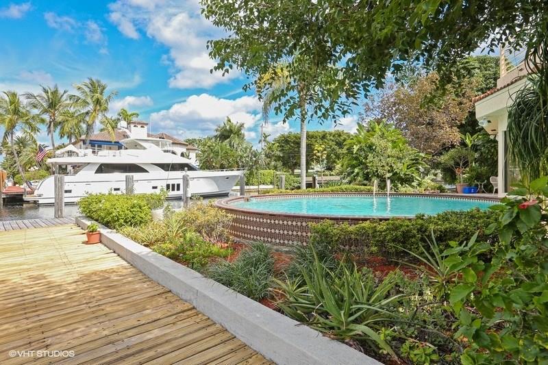 Interior point lot home offers 205 ft. of deep water frontage, ideal for docking large yachts! Featuring wide waterway and large turning basin, quick & easy ocean access with no fixed bridges. Home boasts a sophisticated architectural style with panoramic water views from both levels! Tremendous value! Live in prestigious Seven Isles community. Walk to the beach, Las Olas boutiques, galleries and dining; Seven Isles gate house, 24/7 security. Build new or update existing home.