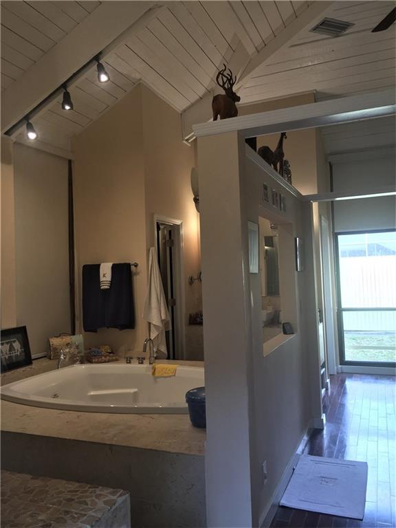 Move in ready 3500sqft courtyard home boasts high volume cedar ceilings, open flr plan perfect for entertaining w upgraded kitchen:dbl oven, counter depth fridge, touch stove top, granite, storage & oasis view. Garage:hurricane door w/ample storage & used as bonus room.Oversized mstr bdrm w hardwood floors, open bathrm jacuzzi tub, lg shower, 2 walk in closets. 3 equal sized bdrms. Atrium areas for reading nooks, meditation, gardens or expanding the living space.Mango tree.Corner lot w parking for 5 cars