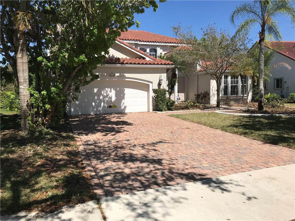 LOWEST PRICED with Amazing panoramic views to GOLF, WATER and screened in patio-POOL.5 Bedroom & 3.1/2 bath home is located in WHCC/GRAND OAKS & has ceramic flooring in living area, high ceilings in living & formal dinning room, quartz kitchen counter top with custom wood cabinets, master plus one bedroom & 2 .5 bathrooms down and 3 bedrooms and 1 bathroom up, 6 CAR paver drive and walkway, paver rear patio, NEWER CLAY ROOF,A/C,WATER HEATER,ACCORDION SHUTTERS. Floor credit $5K BArooms dated NEEDS WORK