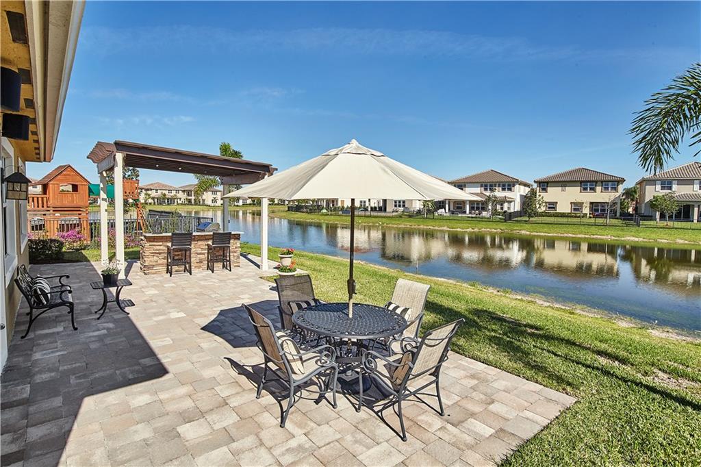 Drastic Reduction!Tastefully decorated & loaded w/approx 55K of after closing upgrades. Almost new sits on a nice size cu-d-sac water lot. Wooden kitchen to die for w/double ovens pull outs, impact windows & eating area. Family room is open to expanded outdoor deck with over-sized pergola & full summer kitchen fridge & BBQ to enjoy the long water views. Better than new :gas stove top, tank less water heater & dryer, 7"crown molding, chair rails. so much more.Great schools, unbeatable new club house.