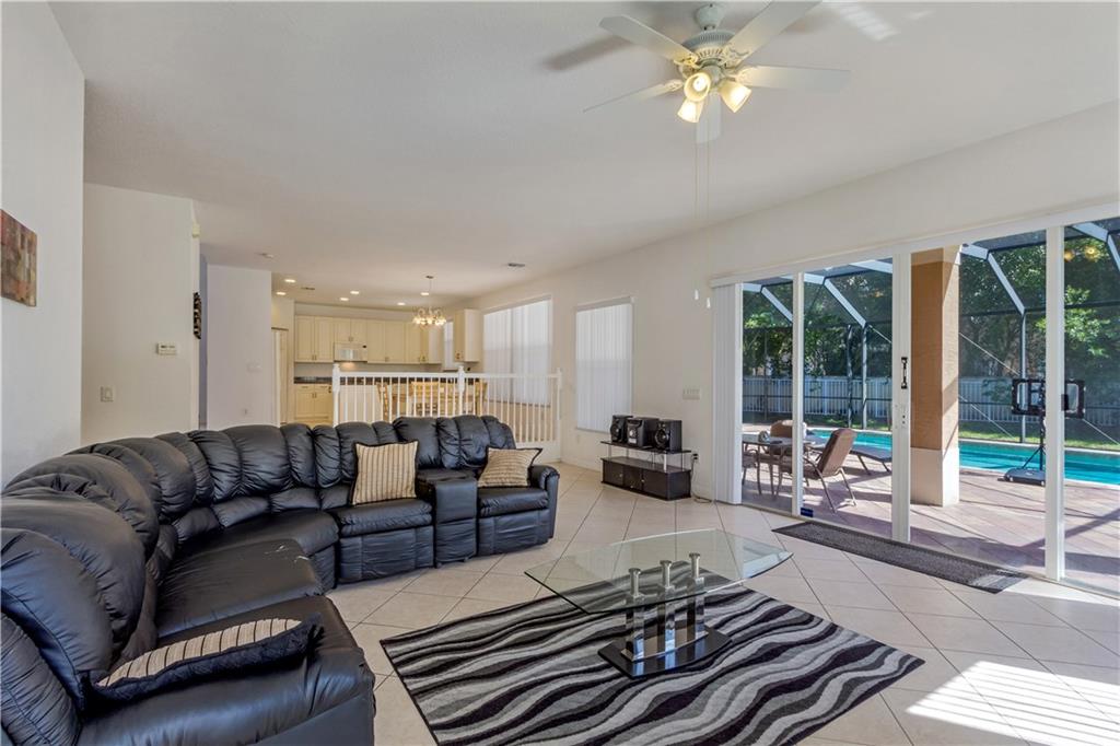 SPACIOUS 6BR/4BA cul-de-sac home in DESIRABLE Sunset Lakes! 6th BR used as LOFT with private bath overlooking main living areas. Floorplan features 2-story formal living & dining rooms with lots of natural light. Enjoy large open kitchen to family room. One bedroom/full bath downstairs. Great for entertaining! Master suite upstairs. Beautiful covered patio with screened-in pool and hot tub! Yard fully fenced! Home FRESHLY painted & NEW carpet! Community has resort-style amenities with low HOA dues!