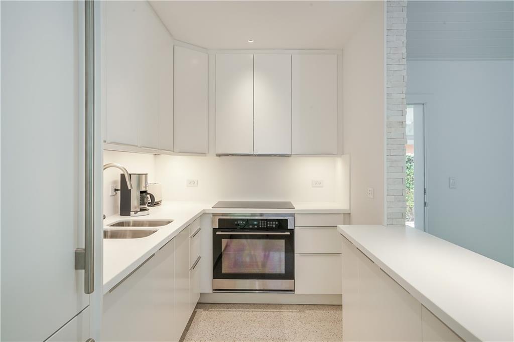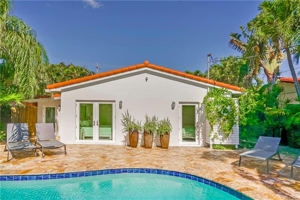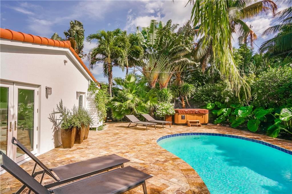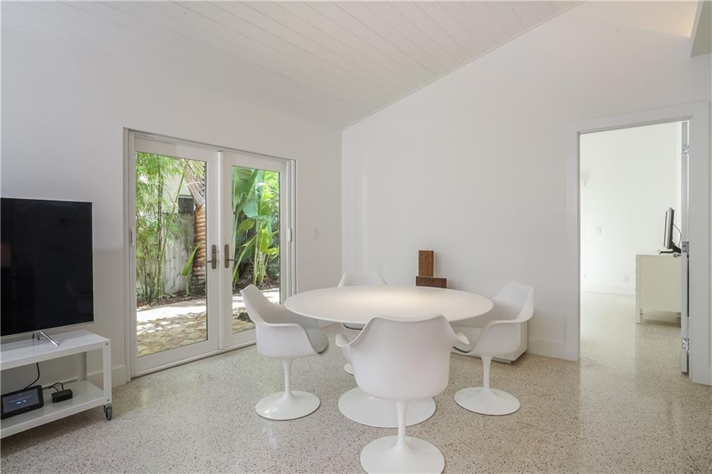 JUST REDUCED $50K! Rebuilt mid-century modern features vaulted ceilings, pristine restored terrazzo, engineered 'silent' AC, new wiring/electric service, impact windows & doors w/ retractable screens, new roof, solid panel doors, stunning LED lighting, custom blinds, Sub-zero fridge, incognito dishwasher, undermount sink, & custom Corian counters/ backsplash. All rooms open to lushly landscaped private heated pool/jacuzzi. Private flex space beckons your prized vehicle, office, art studio, or a 3rd BDRM.