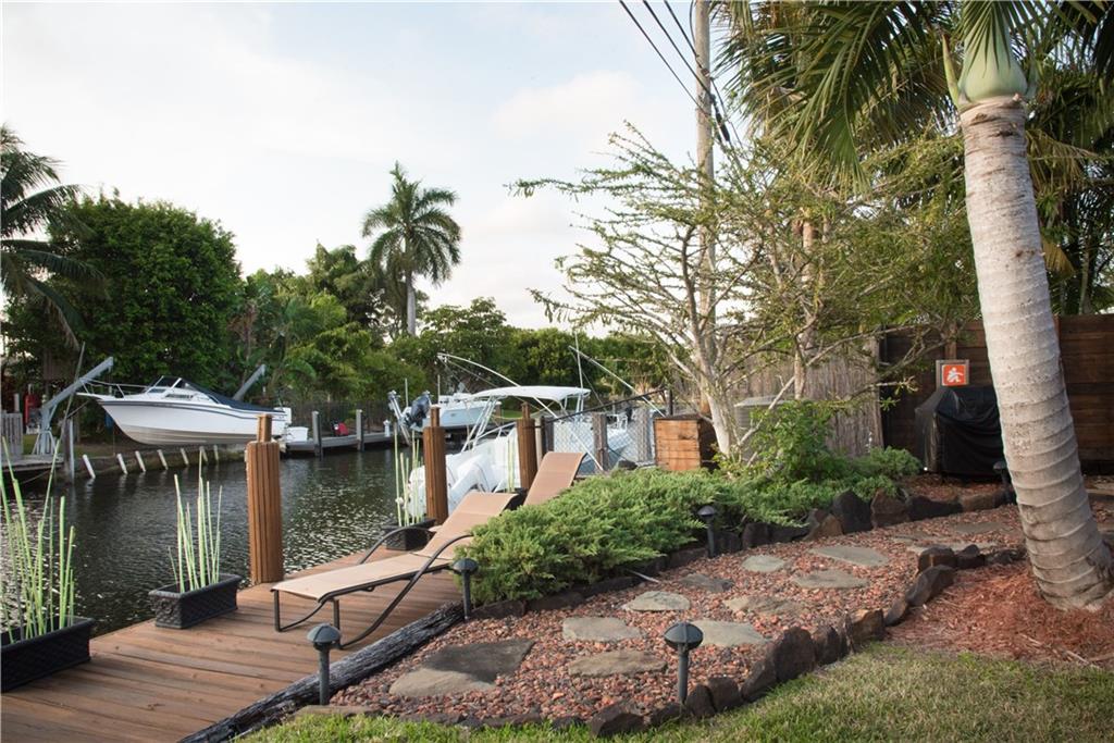 Spectacularly renovated waterfront 3 bedroom 2.5 bath mid century home three docks away from the Middle River, with easy ocean access recently enhanced by the lifting of the Sunrise Bridge. This stylish home is located in highly desirable North Ridge and boasts of nearly 2500 square feet of fine finishes and incredible attention to detail - zebra wood and ash kitchen cabinetry, slate floors, venetian plaster, beamed and cork ceilings, oversized garage, impact glass throughout, and refurbished dock.