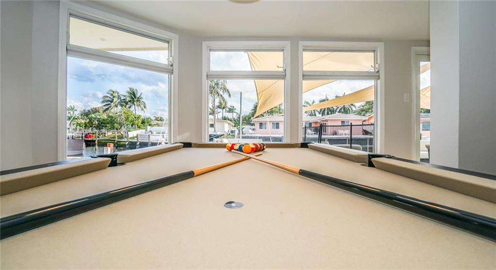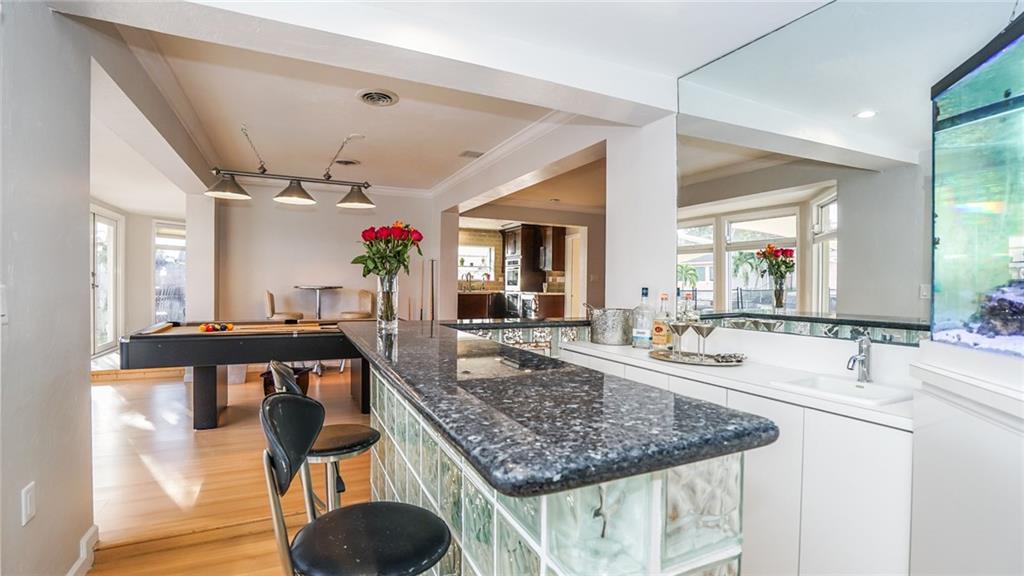 This Waterfront Home HAS IT ALL! with no fixd bridges to ocean. New kitchen cabinetry w/granite & stainless steel appliances. New bathrooms with high-end shower fixtures. High Impact Doors. Large master suite, fabulous pool area and shaded deck. Dock can handle a 75ft boat. Office/4th bedroom can be easily converted back to garage. Bar with tropical salt water fish aquarium. Very close to the very best schools in quiet neighborhood. Great location near beach, shopping, groceries stores,golf & restaurants.