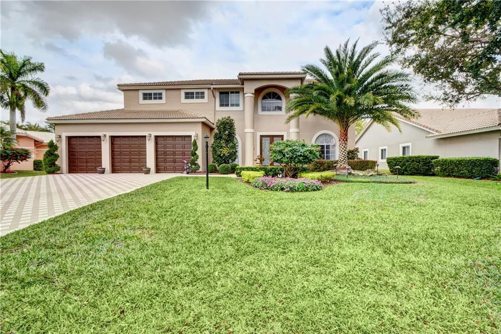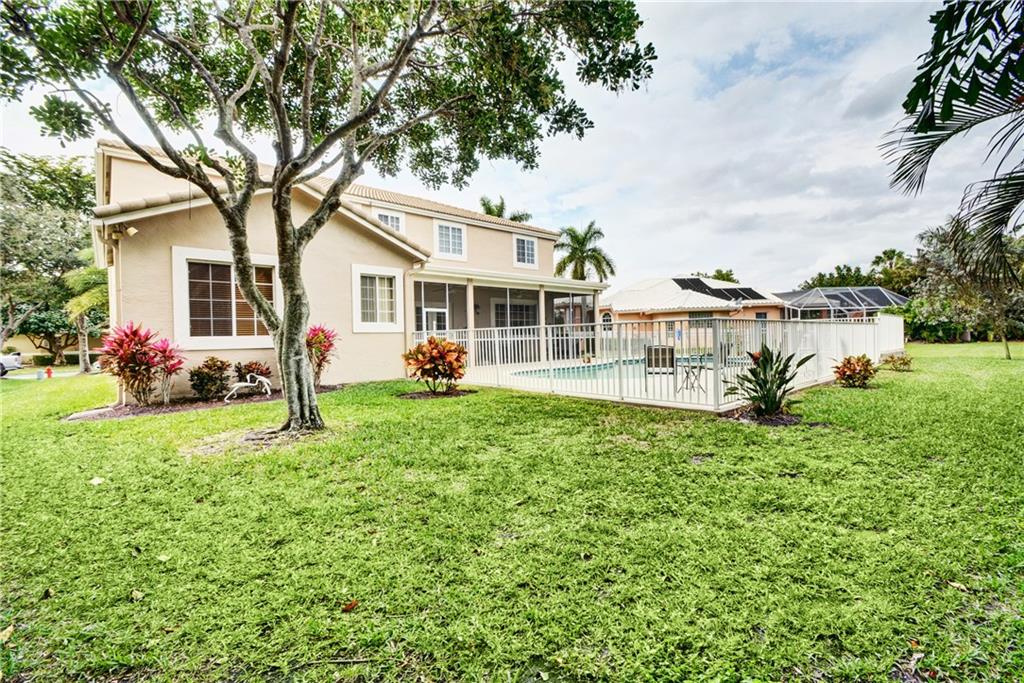 Elegant 5 bedroom, 3 1/2 bath pool home on huge cul-de-sac lot in Meadow Run! This lovely 2 story home has open living area, crown moldings, french doors, game room plus playroom/exercise room easily converted to 2nd master on the 1st floor. Outstanding kitchen w/center island and Jenn-Air Cooktop, stainless steel appliances & double oven. Master bedroom w/private sitting room/study. Impact glass on 2nd floor & Aluminium panels on 1st. Fabulous heated pool & spa. Screened patio.