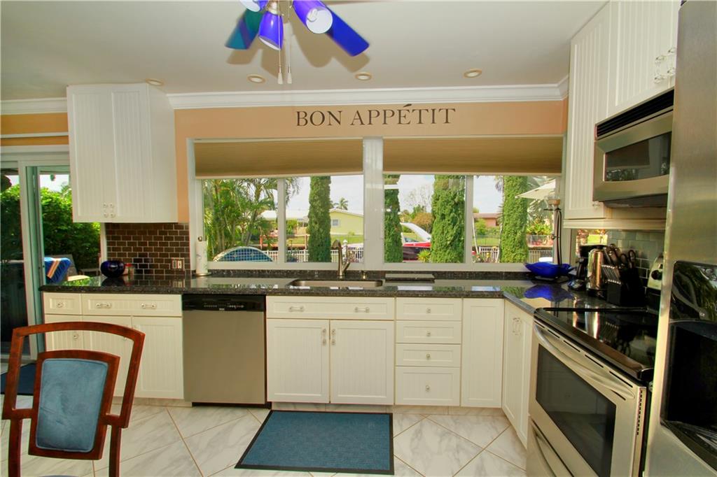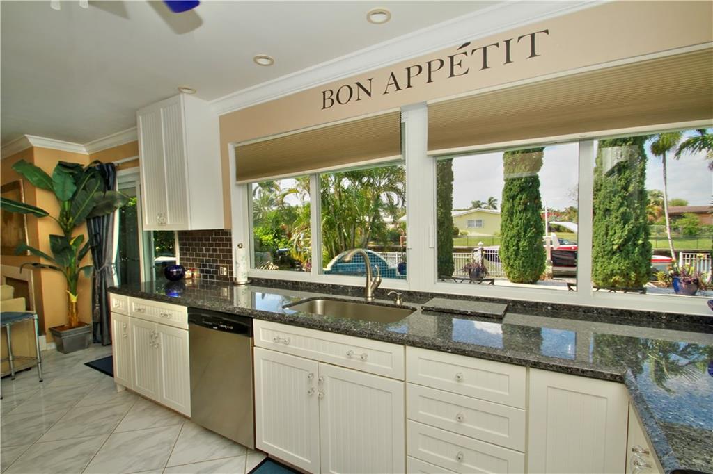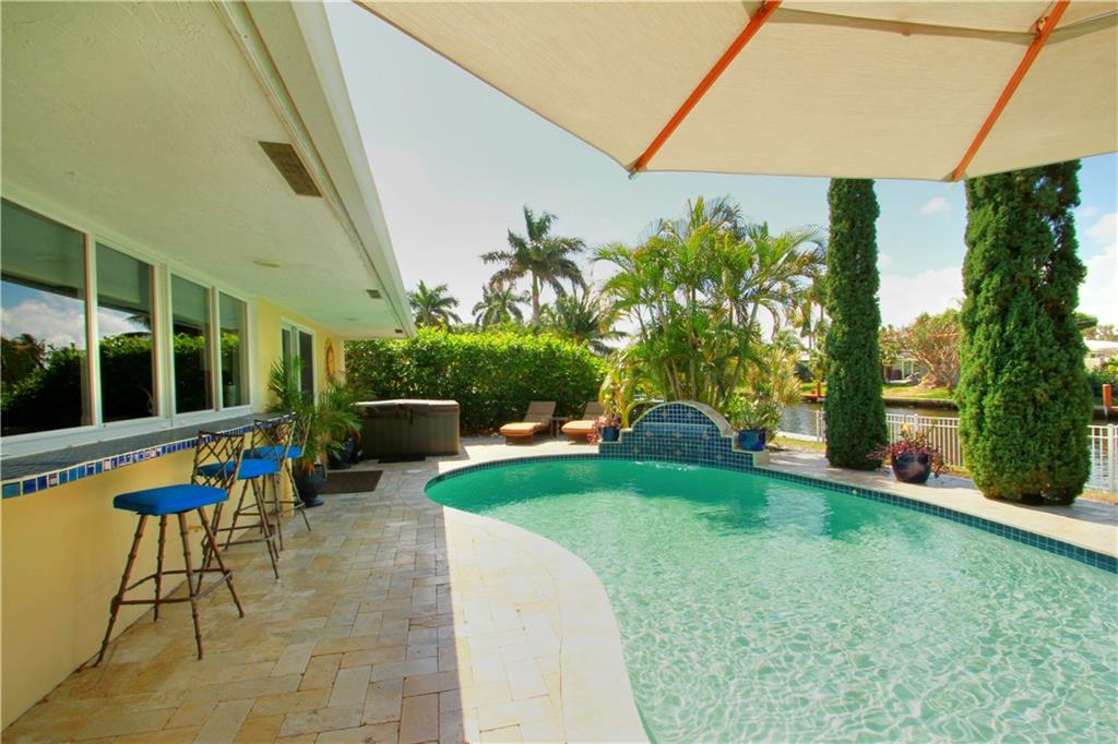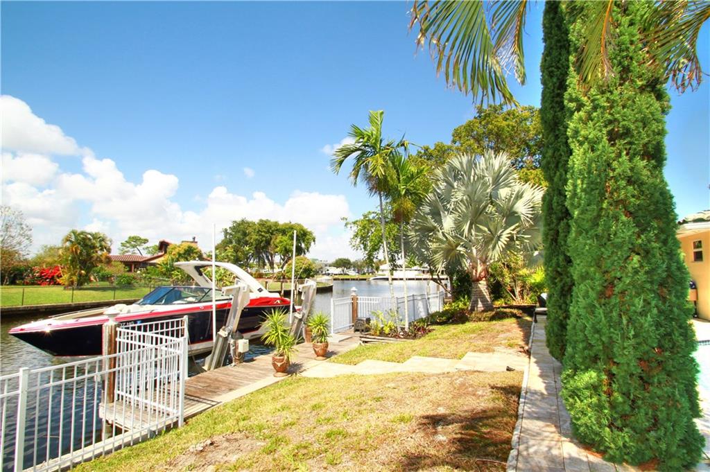 Impressive waterfront view home located on one of the most desirable streets in Imperial Point.Palm & Italian Cypress trees framed by a tumbling pool waterfall. All new pool patio with tumbled marble. Totally remodeled saltwater pool with new pump/heater.Full impact windows & doors. Beautifully remodeled kitchen. Granite counter tops, stainless steel appliances. Lovely family room with cozy fireplace. 3 full bathrooms. New 10,000 lb boat lift.New 3.5 ton over-sized fast recovery air conditioner. Must see!