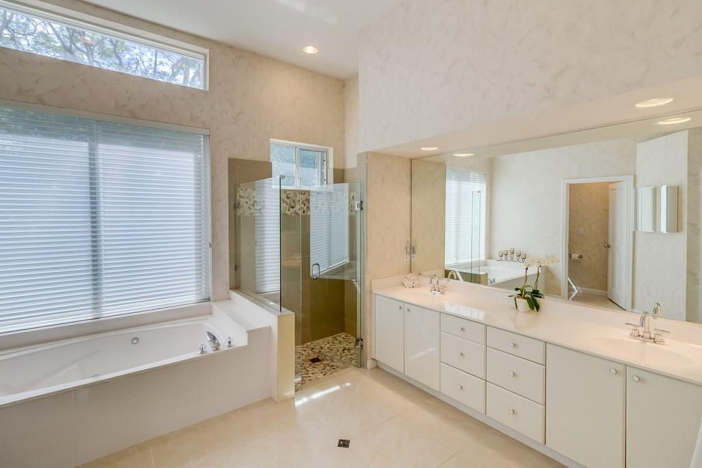 Highly desired renovated courtyard home with heated pool, spa and separate private guest house. Master bedroom and bath on 1st floor with large walk-in closets and jacuzzi tub with separate shower and private water closet. Master and living areas have soaring 18 foot ceilings. Beautiful flowing floor plan which opens out to the courtyard pool makes this home perfect for entertaining. Across from Boca Town Center Mall. In an A-rated public school district. Community has great amenities. Roof new 2013.