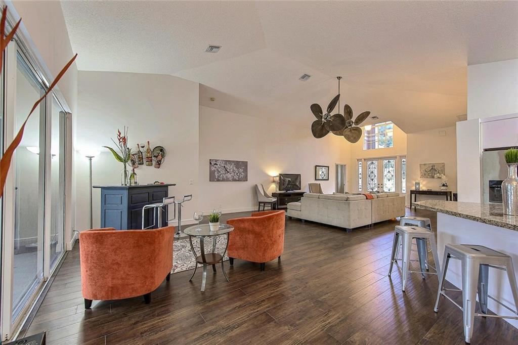 Contemporary style and architecture in this just remodeled home. All new kitchen features granite counters and stainless steel appliances. Exquisite new wood floors, remodeled baths and fixtures. Split bedroom plan, great room concept, cathedral ceiling. Interior freshly painted. South facing open pool. Large screened patio. HOA includes lawn maintenance & tennis. 24 hour guard gated community, minutes to the heart of town and Sawgrass Expressway. No obligation for golf membership. Quick occupancy.