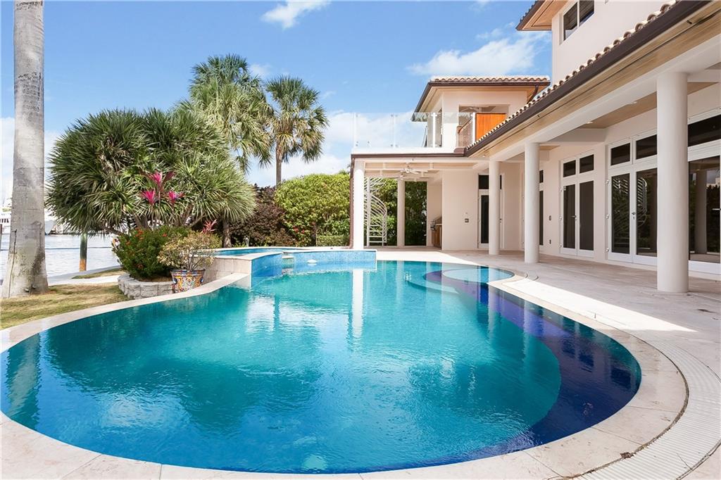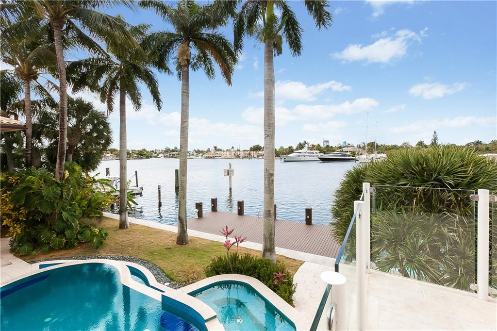 A FRONT SEAT ON THE WATER. 104' Middle River frontage custom built 1 story home on deep water with 42'x17' dock & no fixed bridges. Easily accommodates 84' yacht. No expense spared design w/ high end finishes offers split floor plan with 2nd master suite. Elevated lanai, summer kitchen & outdoor bath with steam shower. Central audio system. Enjoy an easy walk to the beach, Galleria, Las Olas & parks. Detail report available. Priced below appraisal.