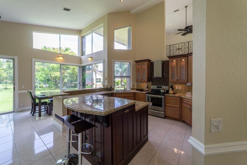 Spectacular one of a kind California Style 5 bedroom home. Updated kitchen with SS appliance, wood cabinets, granite counter top, built in wine rack. Tiles throughout home, Central vacuum system. High 17' ceiling, crown molding throughout, accordian shutters. A must see! Bring your toothbrush and enjoy this 5 bedroom 2, 2.5 bath.