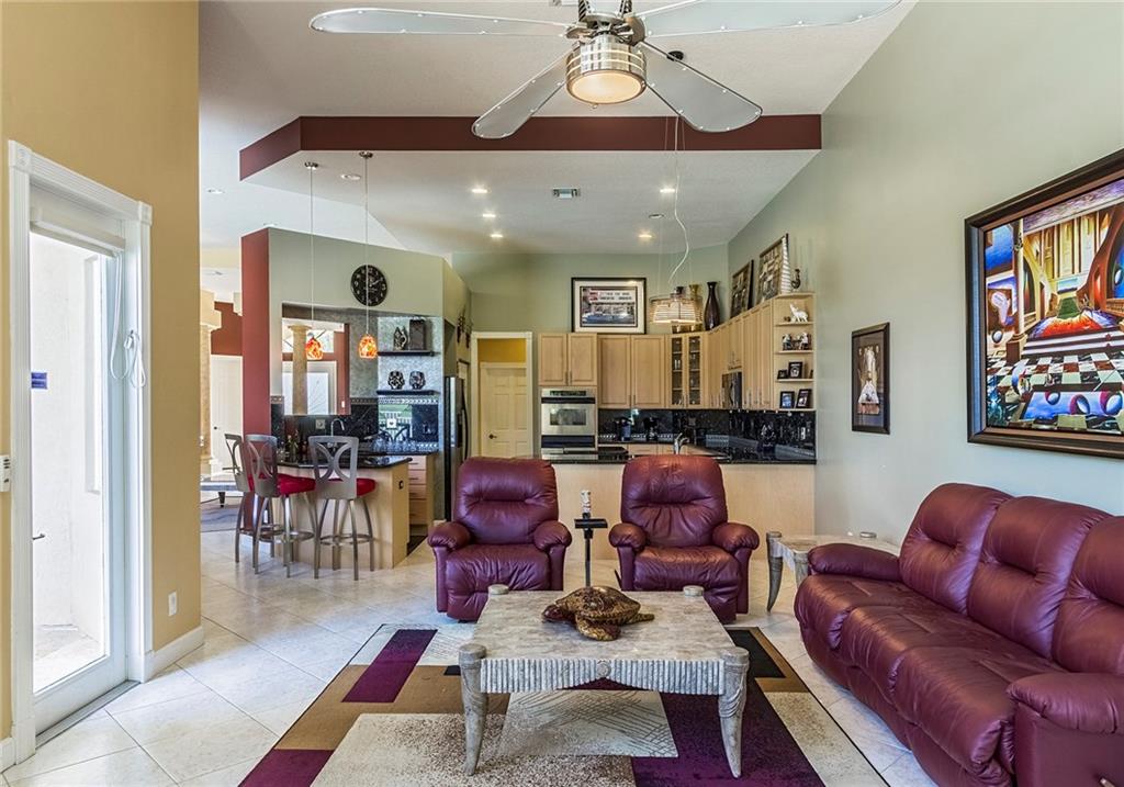 Open floor plan, 3 bed, 3 bath, plus bonus room (office/den) and large private heated pool and hot tub, this home is perfect for entertaining. Located on the best lot in Grand Oaks golf community with recently redone private pool deck overlooking the 9th Tee box of the Grand Oaks Executive golf course. Free, unlimited golfing on this course for the new owner. Large master suite boasts his and her showers as well as large walk in closets.