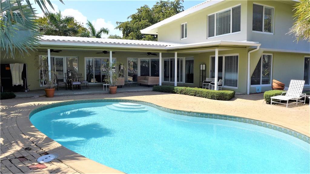 Spectacular & rarely available home displaying such expansive waterway views! 4,298sf of Mid Century Modern w/ terrazzo flooring throughout, 3 incredibly large bedrooms, 1st floor master, separate office, 2 baths & 2 half baths, living & dining rooms, 70' of private dock & no fixed bridges! Serene & spacious outdoor covered living room perfect for rainy afternoons, lush landscaping for full privacy, sun drenched pool, & unobstructed Intracoastal Views. Minutes from Fort Lauderdale Beach & Downtown
