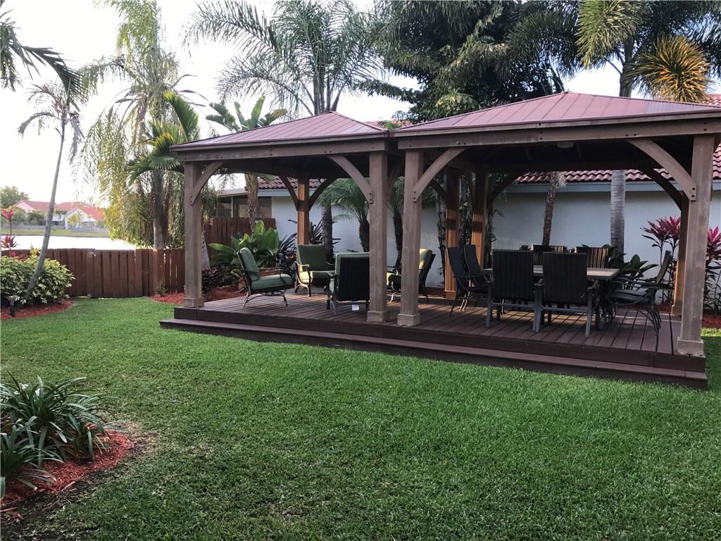 MOST DESIRABLE LOCATION. GORGEOUS HOME TASTEFULLY AND COMPLETELY RENOVATED. TRAVERTINE MARBLE FLOORSTHROUGHOUT.GRANITE COUNTER TOPS WOODCABINETS.CAMARASYSTEM. VAULTEDCEILINGS WITH RECESSED LIGHTING. FRENCH CUSTOMDOORS. BEUTIFULLY LANDSCAPED WITH LIGHTING. AMAZING BACKYARD WITH TWOCUSTOM LARGE GAZEBOS EQUIPPED WITH FANS PERFECT FOR ENTERTAINING.MIELE APPLIANCES/SUBZERO FRIDGE. NEW A/C 2YRS. MINUTES AWAY FROM THE SAWGRASS MALL AND HIGHWAYS. READY FOR YOU TO MOVE IN. WON'T LAST!