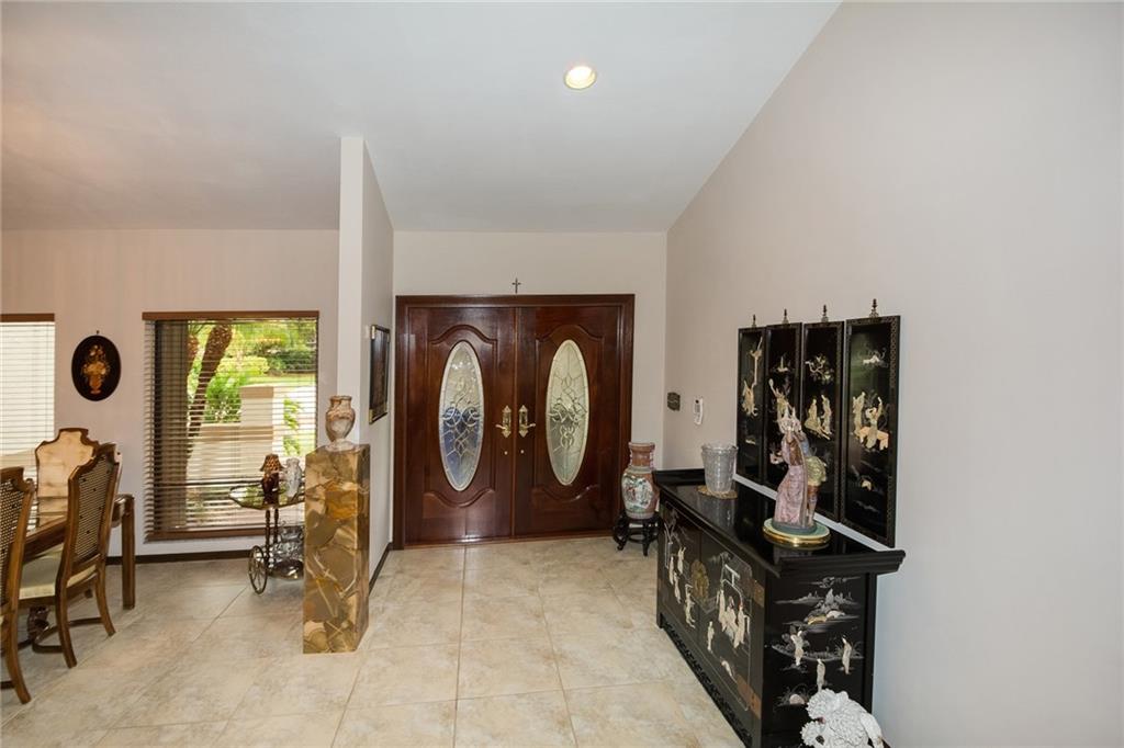 Great home in desirable Jacaranda Cay! Spacious home sits on a large waterfront corner lot. Large bedrooms, master bedroom with 2 walk-in closets, master bath has a Roman step-up tub and separate shower and 2 separate vanities with sinks. Family room has a wood burning fireplace and a full cabana bath. Large kitchen and a formal dining room. Tiled patio around pool. Well maintained house with a newer roof. Huge corner lot with deep backyard on a navigable canal.