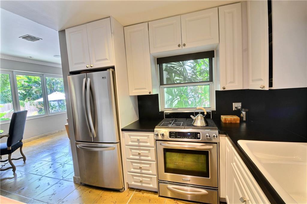 Downtown living walking distance to restaurants, shops, night life, the water taxi & the beach! This private compound has been exquisitely updated while maintaining the classic charm of its original design. 2BR/2FBA in the main house & 1BR/1FBA in the guest house with a sep. entry, patio area & parking. A lrg bright great rm with a vaulted wood beamed ceiling, curved walls, detailed moldings, newer impact windows & doors, roof, tankless gas hot water heater, a/c & more. Sq ft from BCPA believed accurate.
