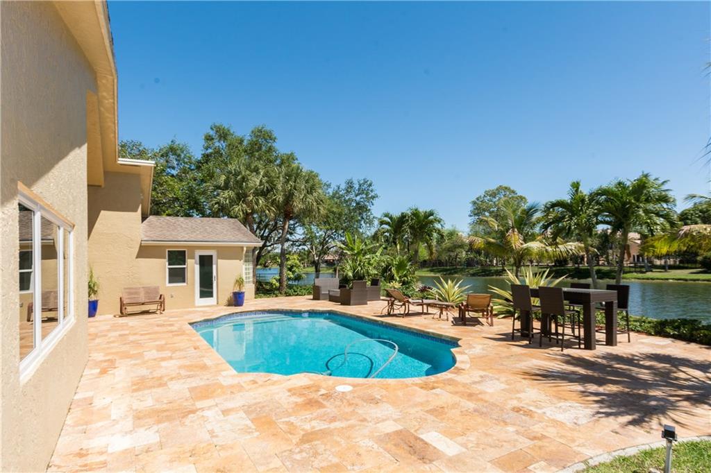 BEAUTIFUL CUSTOM 5BR/3.5BA-DESIRABLE WHISPERING PINES! OPEN LIGHT FILLED FLOOR PLAN, MARBLE IN SOCIAL AREAS, HIGH QUALITY WOOD IN BR'S! IMPACT WINDOWS & DOORS! GRANITE KITCHEN, WINE COOLER, SUNNY BREAKFAST ROOM + FORMAL DINING. TRULY ENORMOUS MASTER SUITE SANCTUARY! HUGE SECONDARY BEDROOM! SPLIT PLAN. ALL CALIFORNIA CLOSETS! N/S EXPOSURE, WONDERFUL COVERED OUTDOOR SPACE, TRAVERTINE PATIO, SPARKLING POOL WITH TRANQUIL LAKE VIEWS! A-SCHOOLS INCL COUNTRY ISLES IN WESTON. GREAT COMMUNITY-LOW MAINT FEE-HURRY!