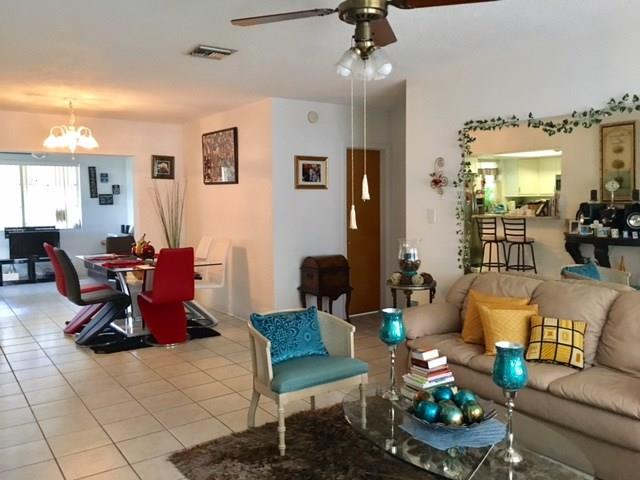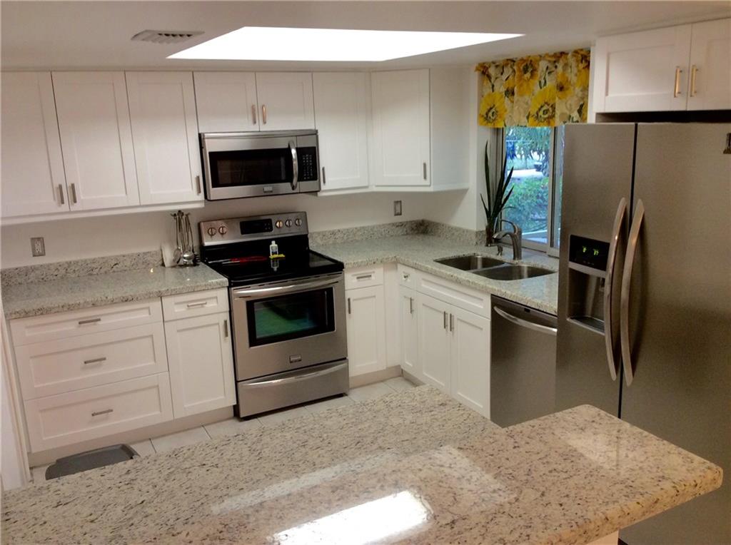 Clean, roomy, bright and well-kept 2/2 home with Sun/TV Room, Laundry Room, Screened Porch and 1-car Garage. Upgrades include newer white wood kitchen with granite counters, snack counter bar, full S/S appliances, water heater, electric and exterior paint. Walk-in closets in both bedrooms and full linen closet. Good size yard with mature mango and avocado trees.